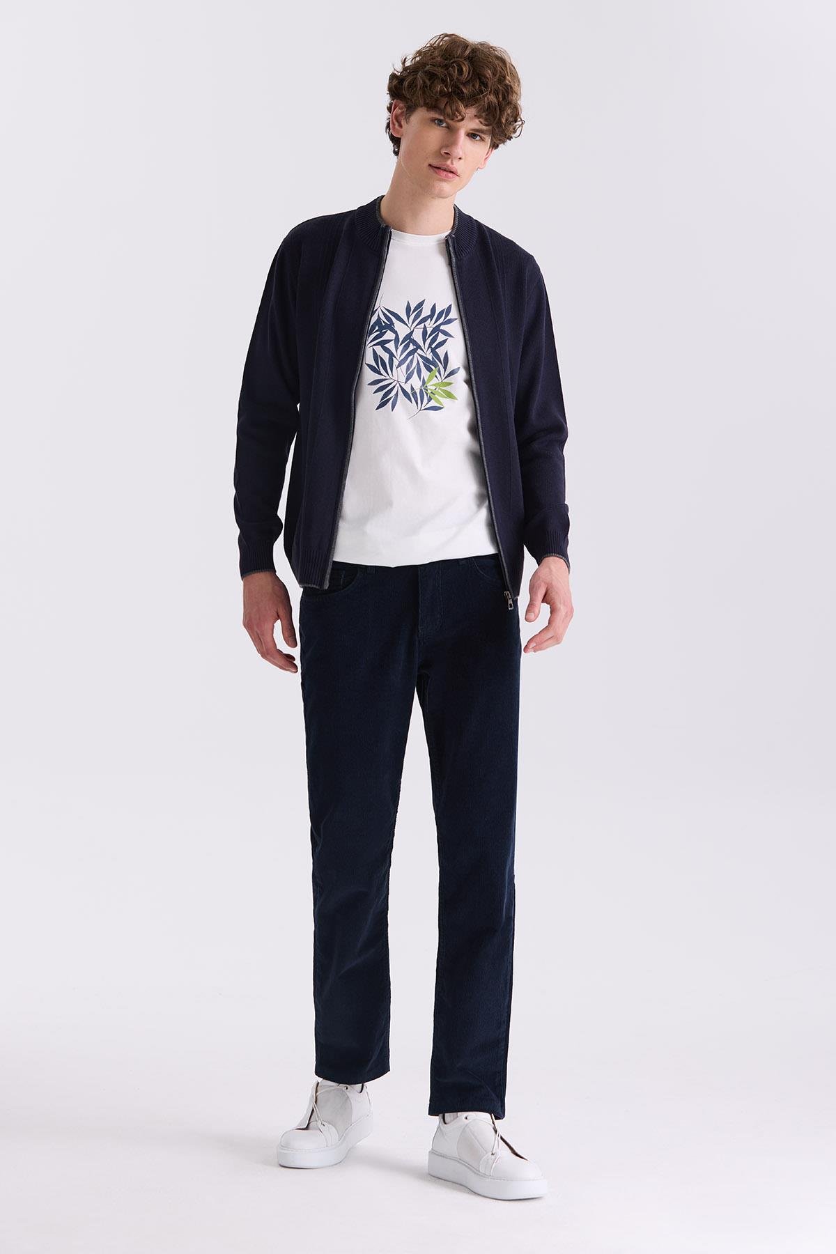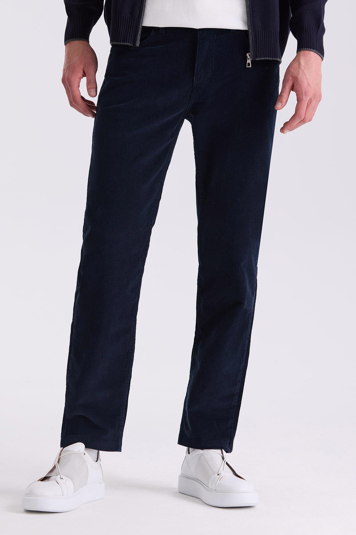 Lacivert Regular Fit Likralı Pamuklu Kadife Pantolon