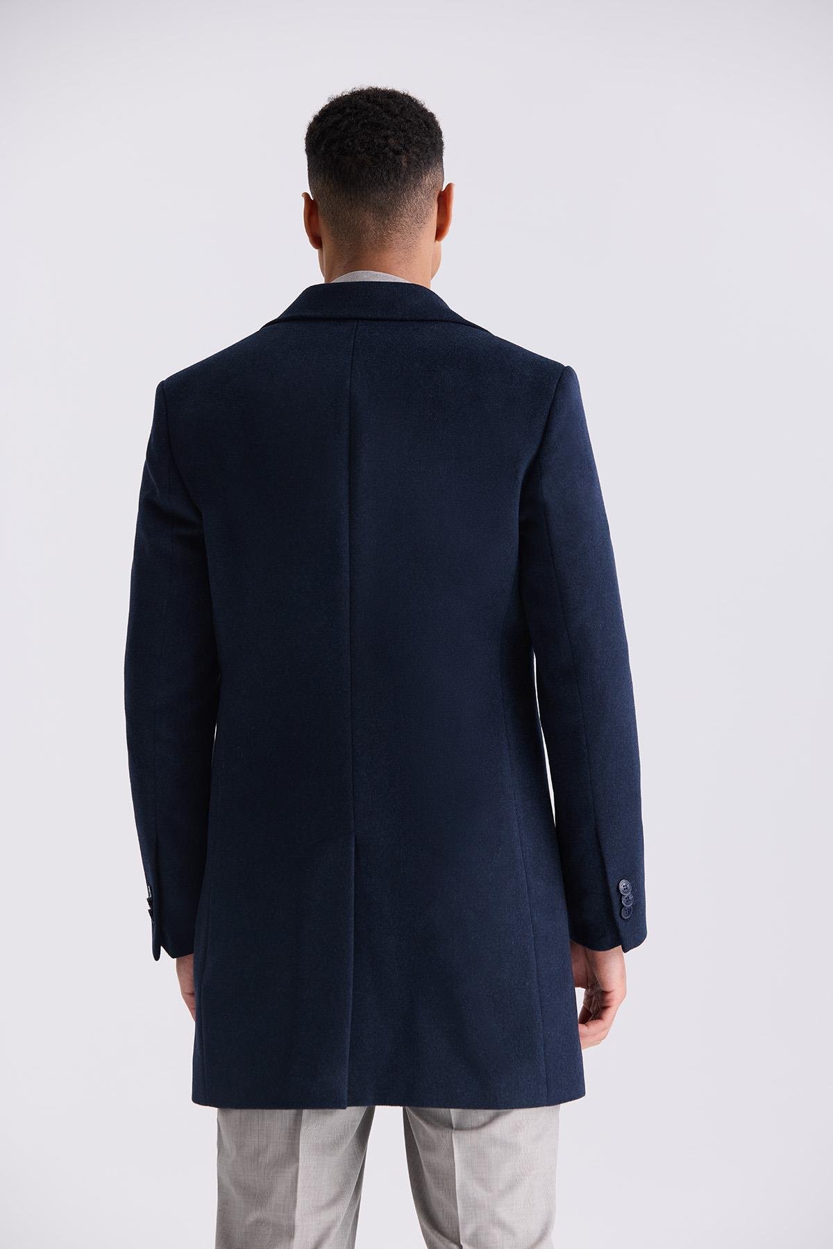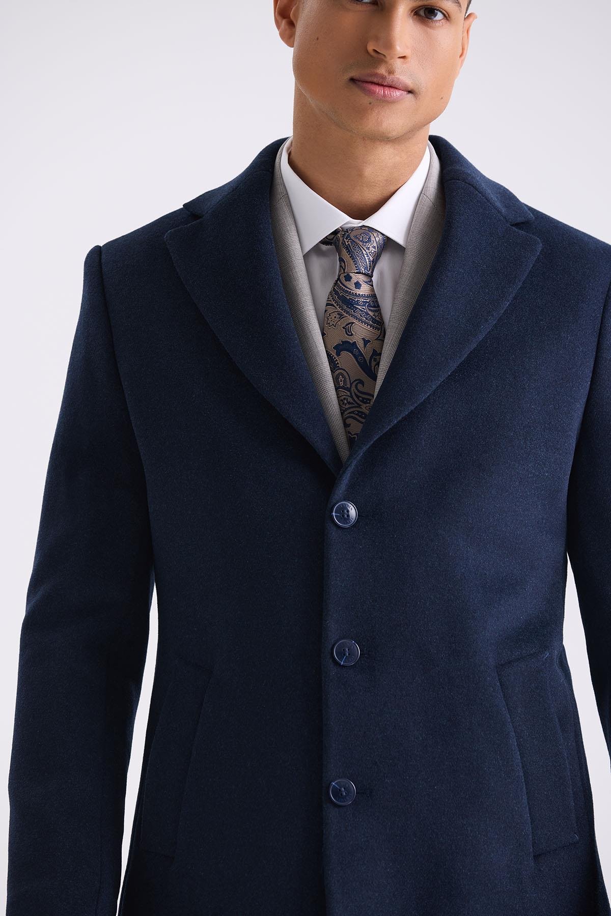 Lacivert Regular Fit Mono Yaka Yünlü Kaşe Kaban