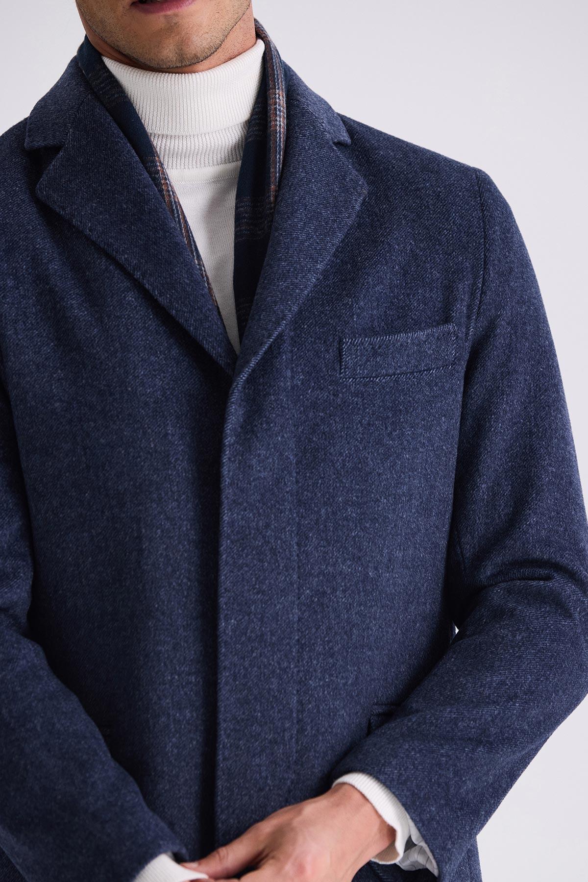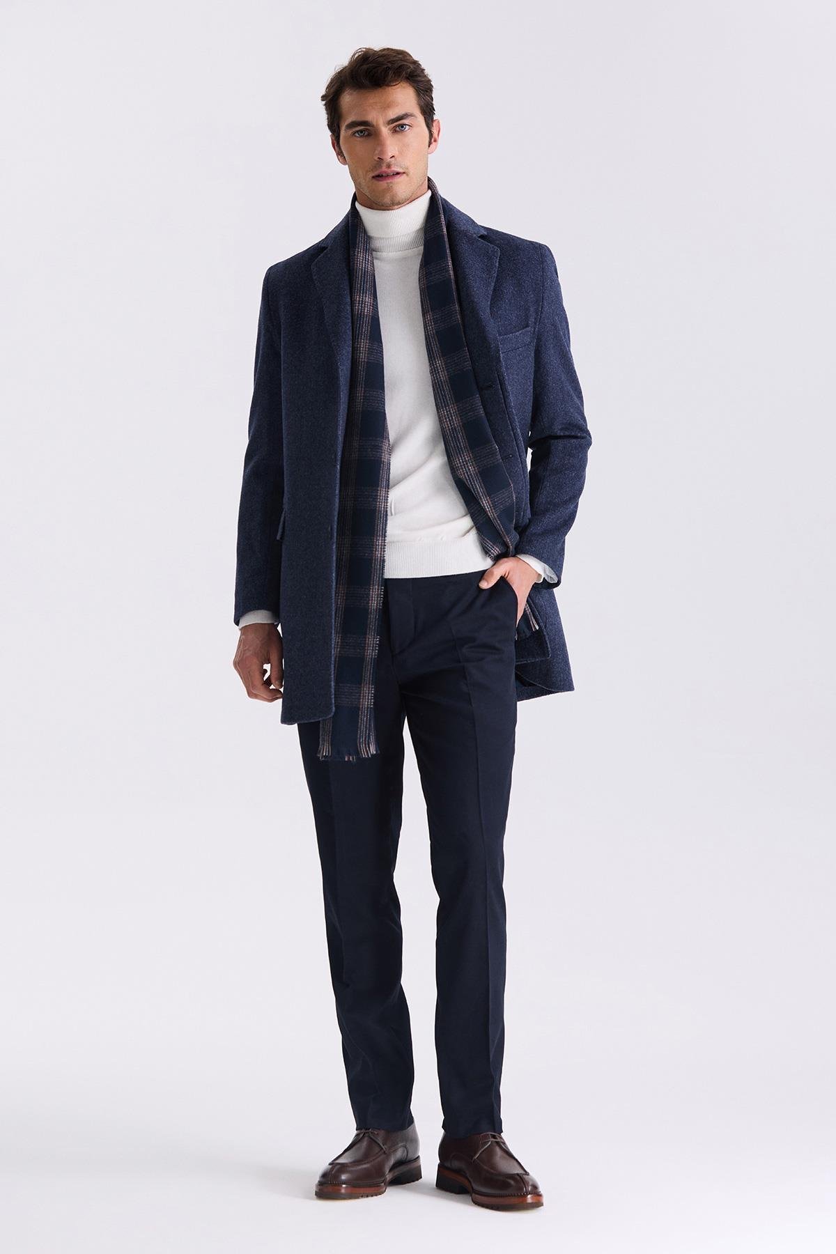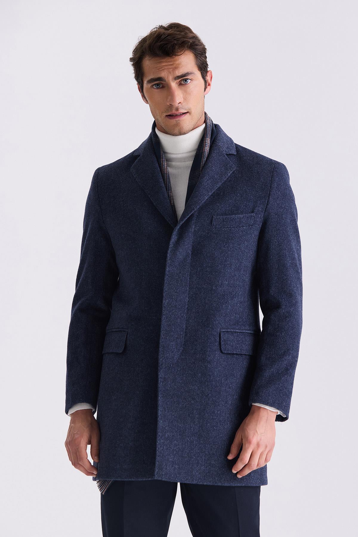 Lacivert Regular Fit Mono Yaka Yünlü Kaşe Kaban