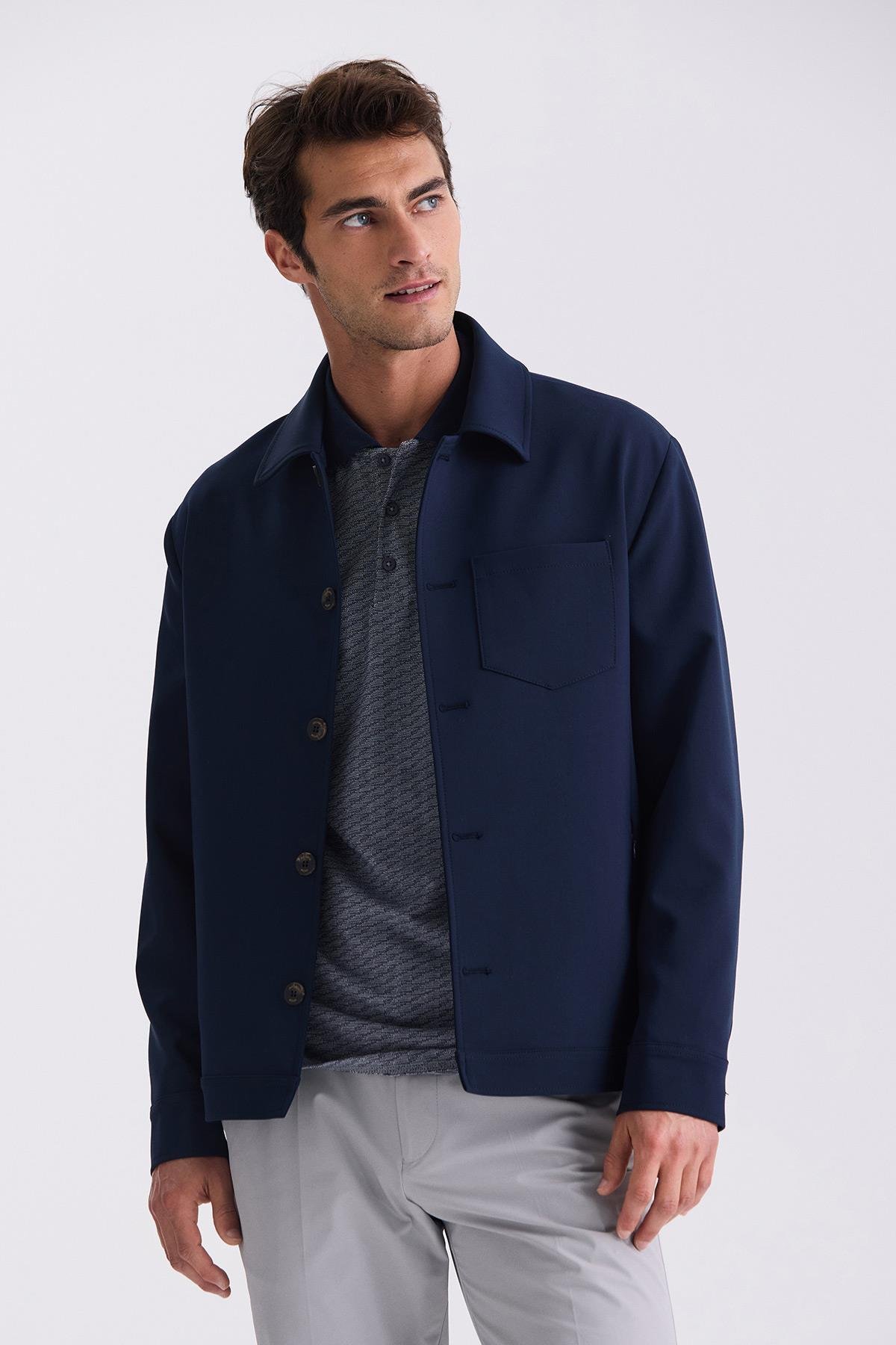 Lacivert Slim Fit Bebe Yaka Mevsimlik Mont