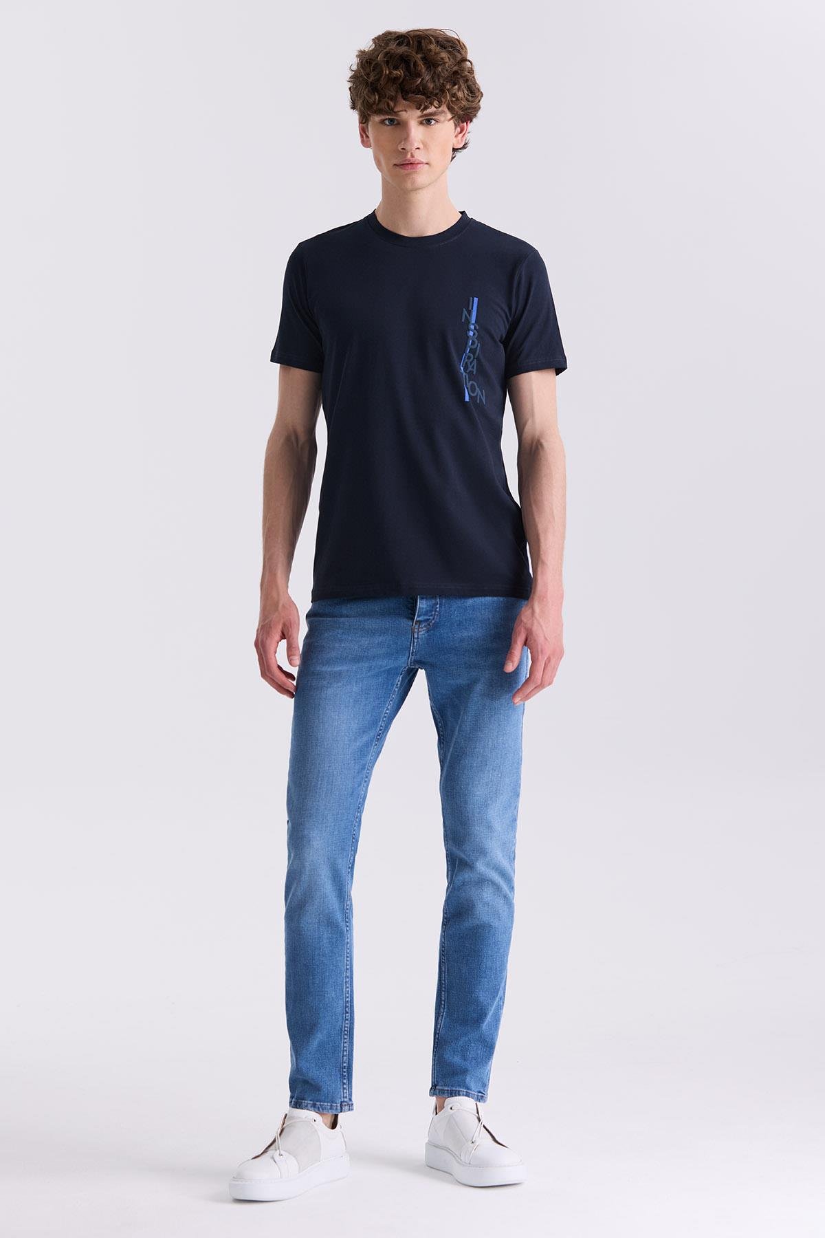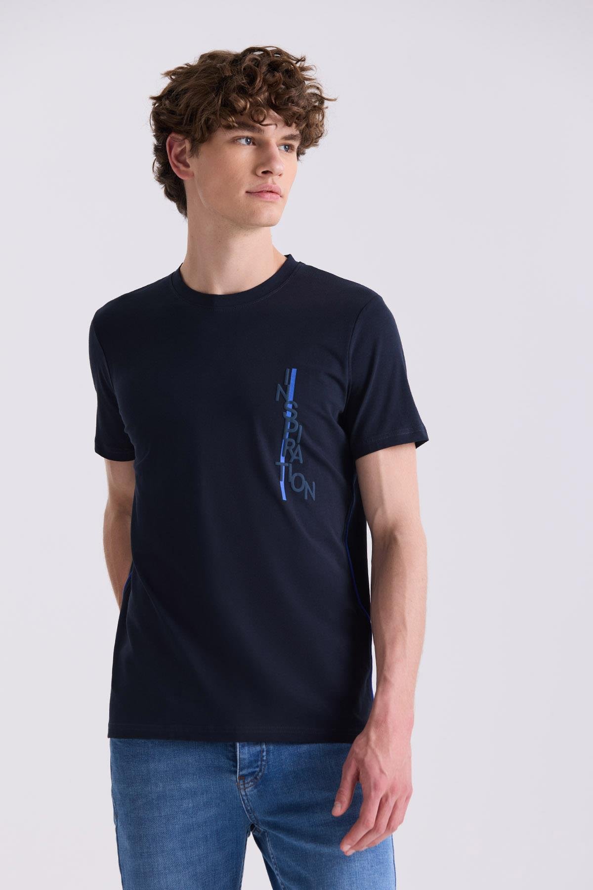 Lacivert Slim Fit Bisiklet Yaka T-Shirt