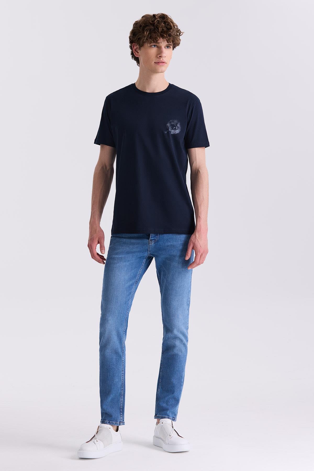 Lacivert Slim Fit Bisiklet Yaka T-Shirt