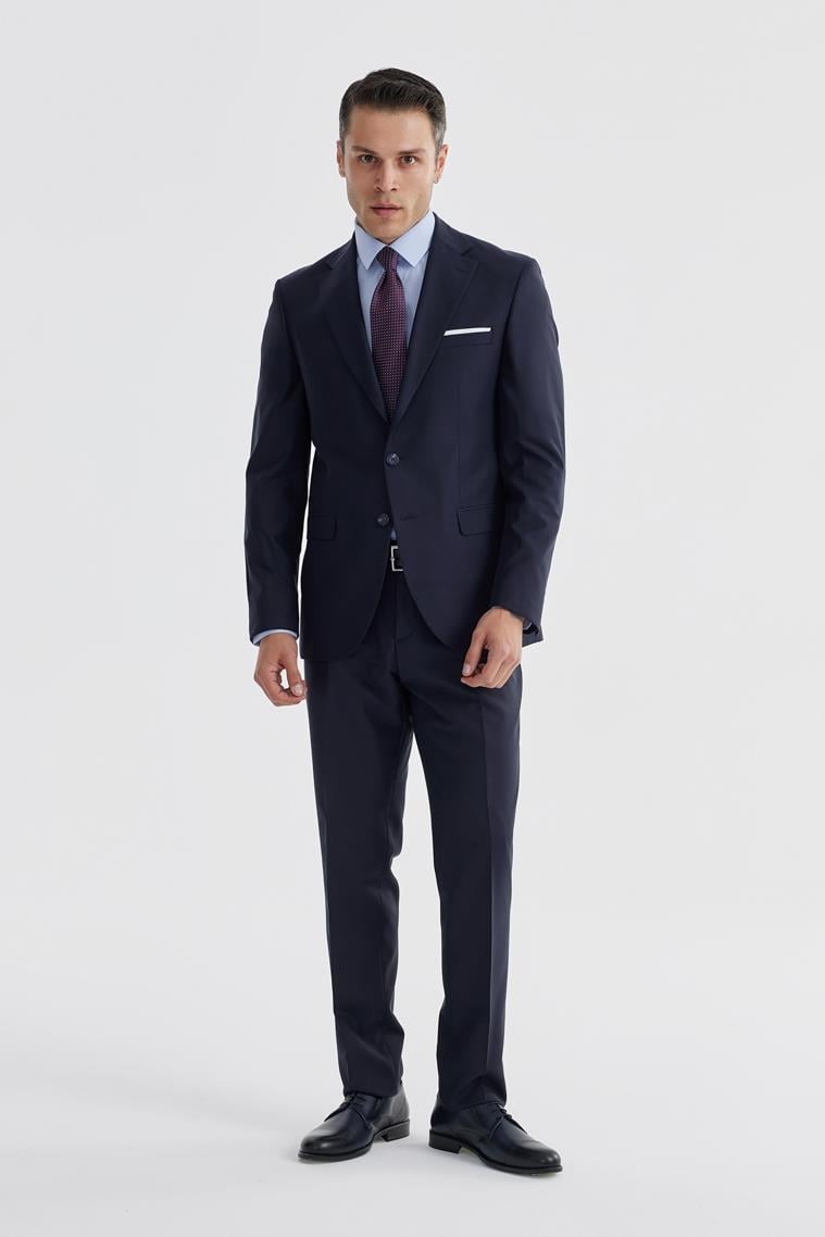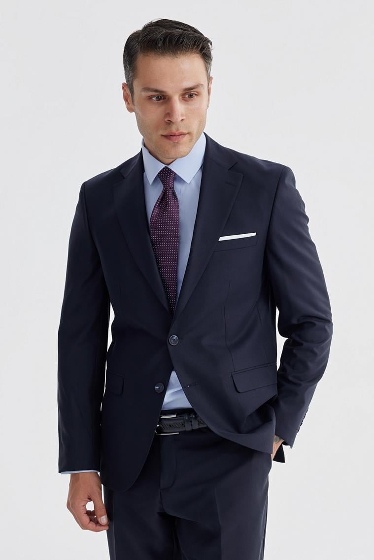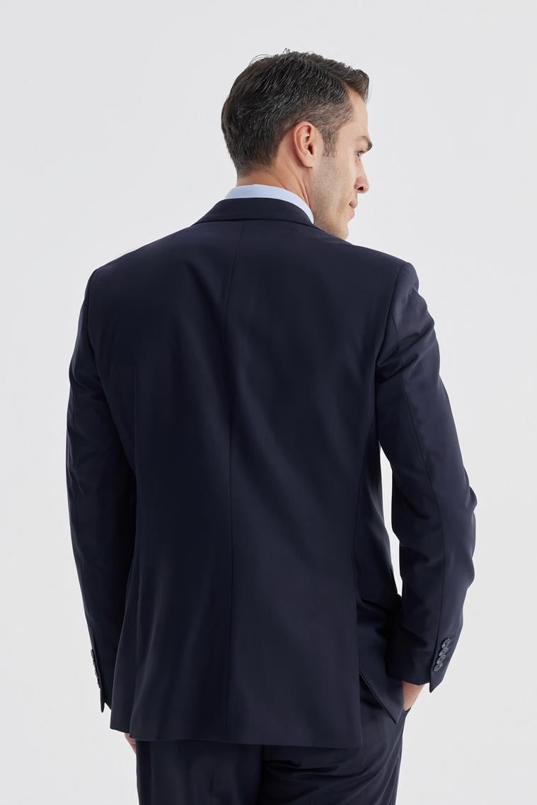 Lacivert Slim Fit Mono Yaka Çift Yırtmaç Düz Takım Elbise