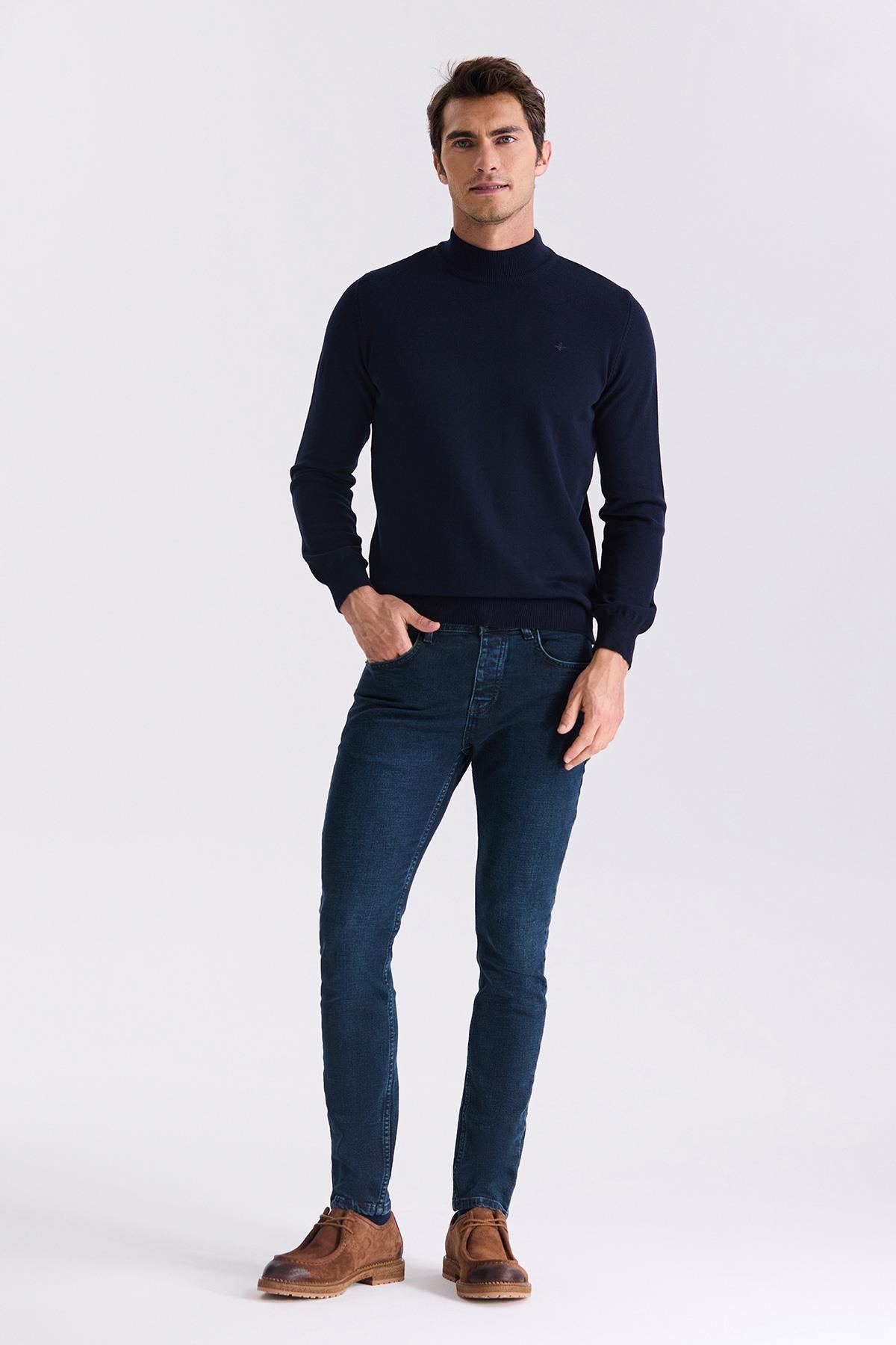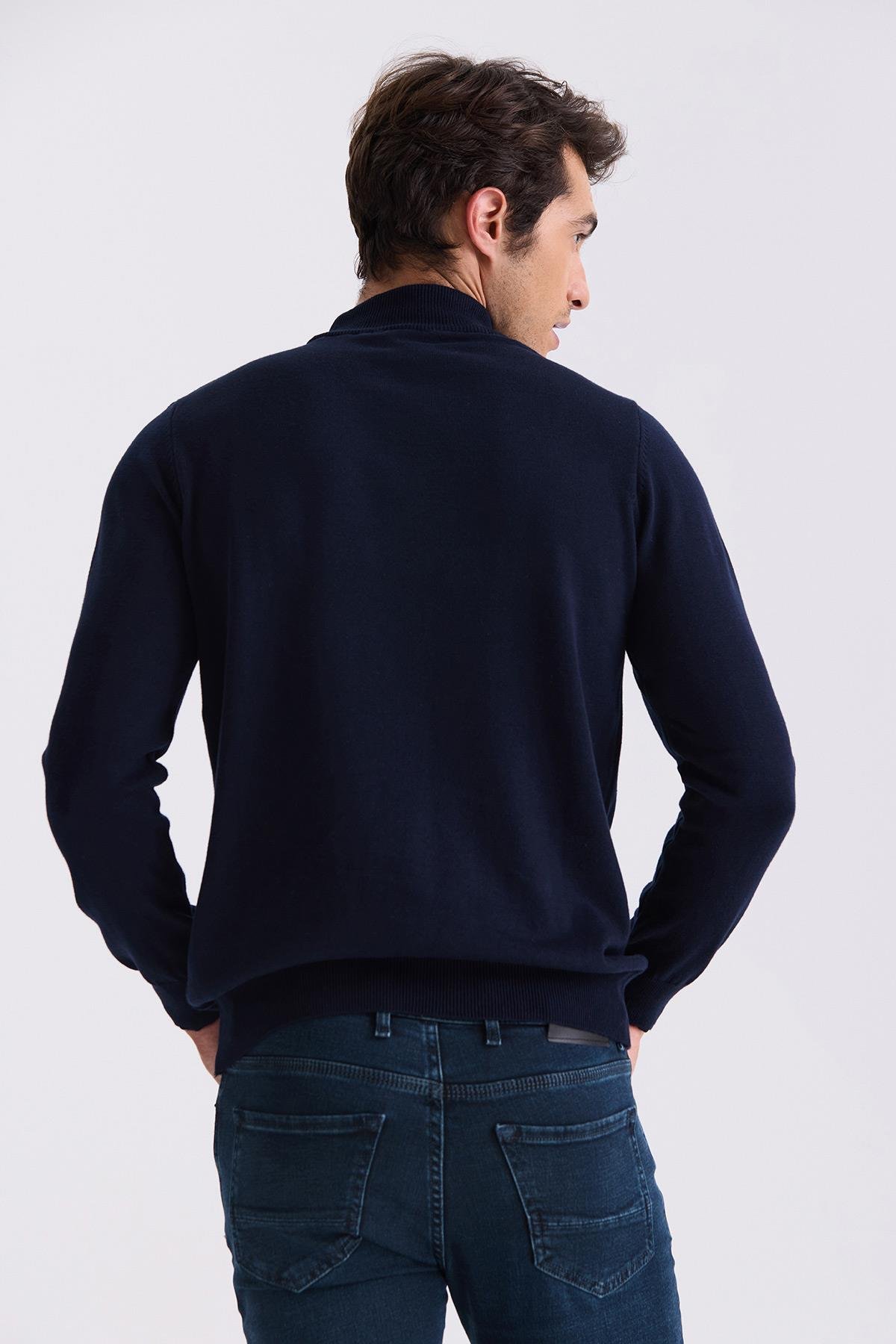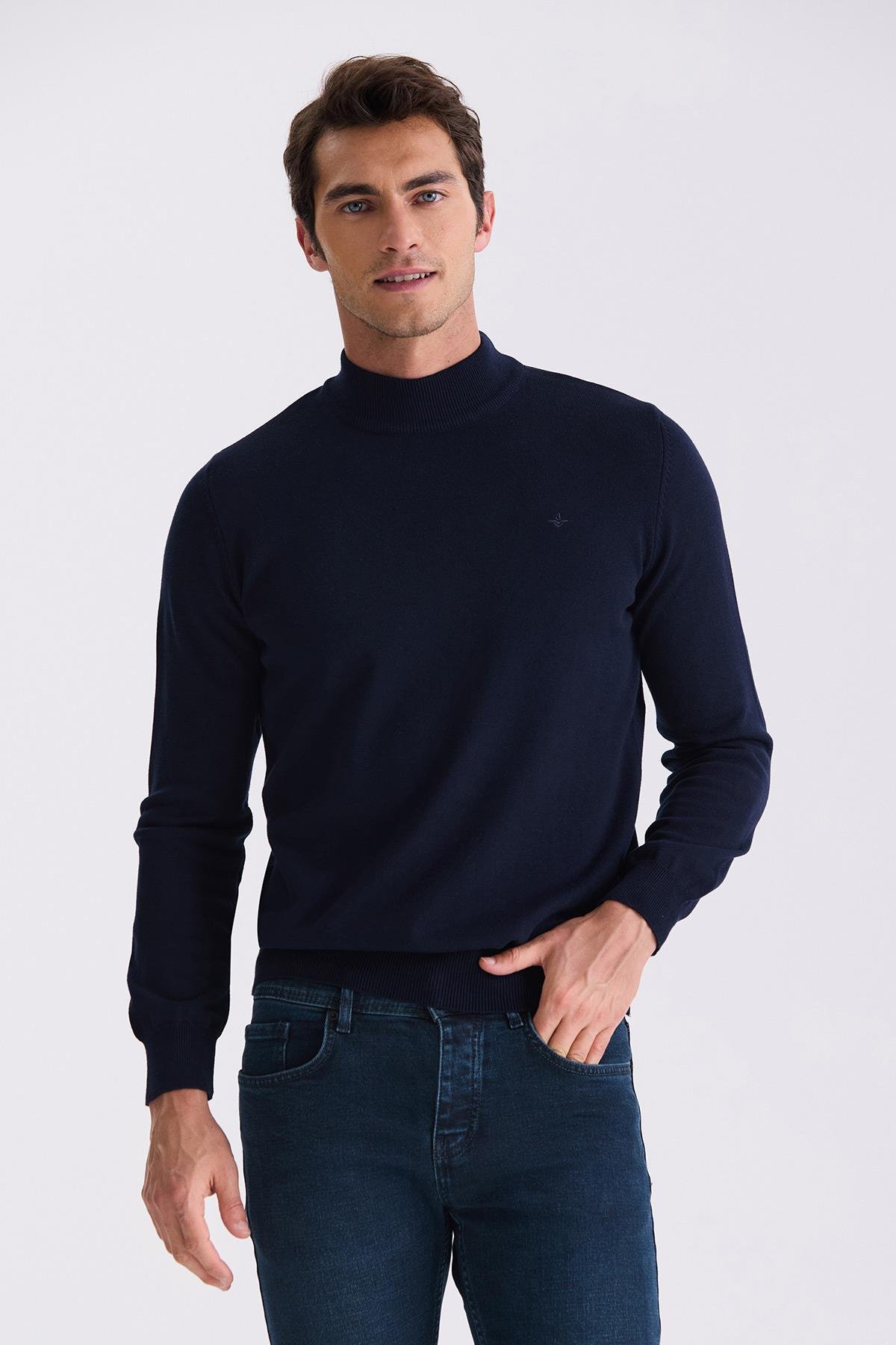 Lacivert Slim Fit Yarım Balıkçı Triko Kazak