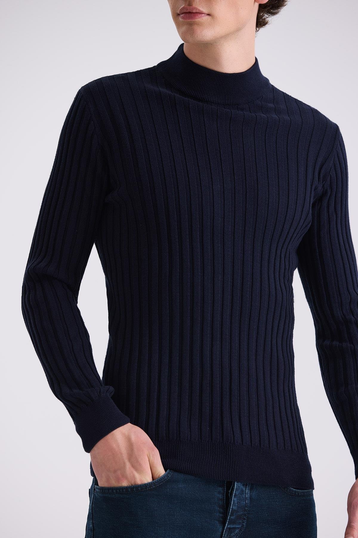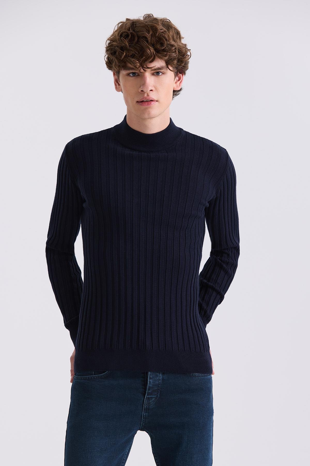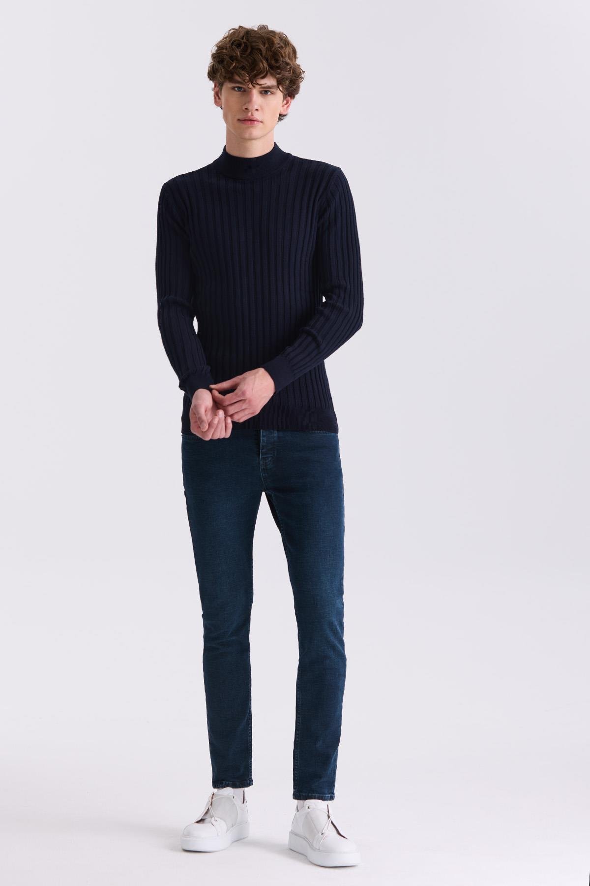 Lacivert Slim Fit Yarım Balıkçı Triko Kazak