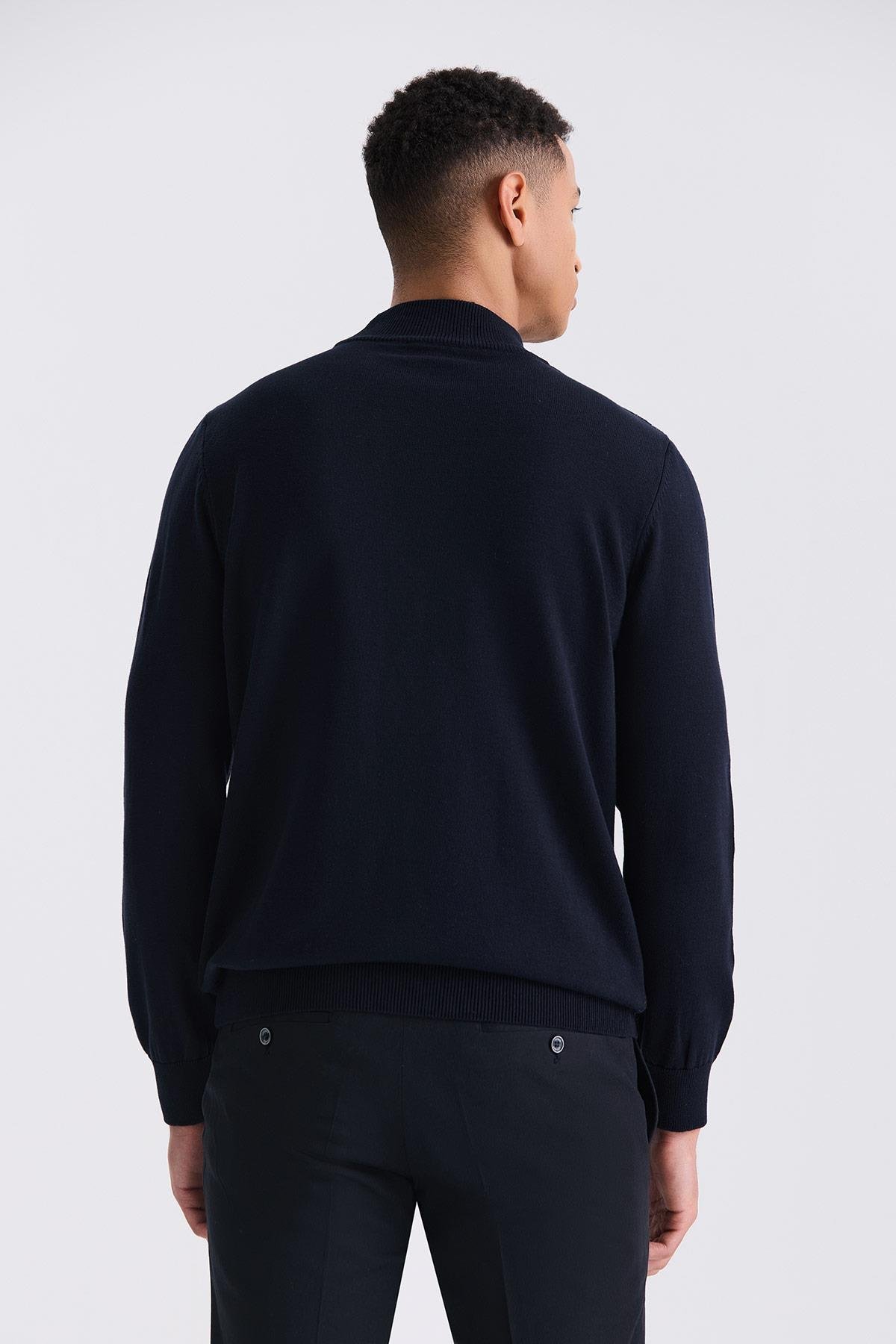 Lacivert Slim Fit Yarım Balıkçı Yaka Triko Kazak