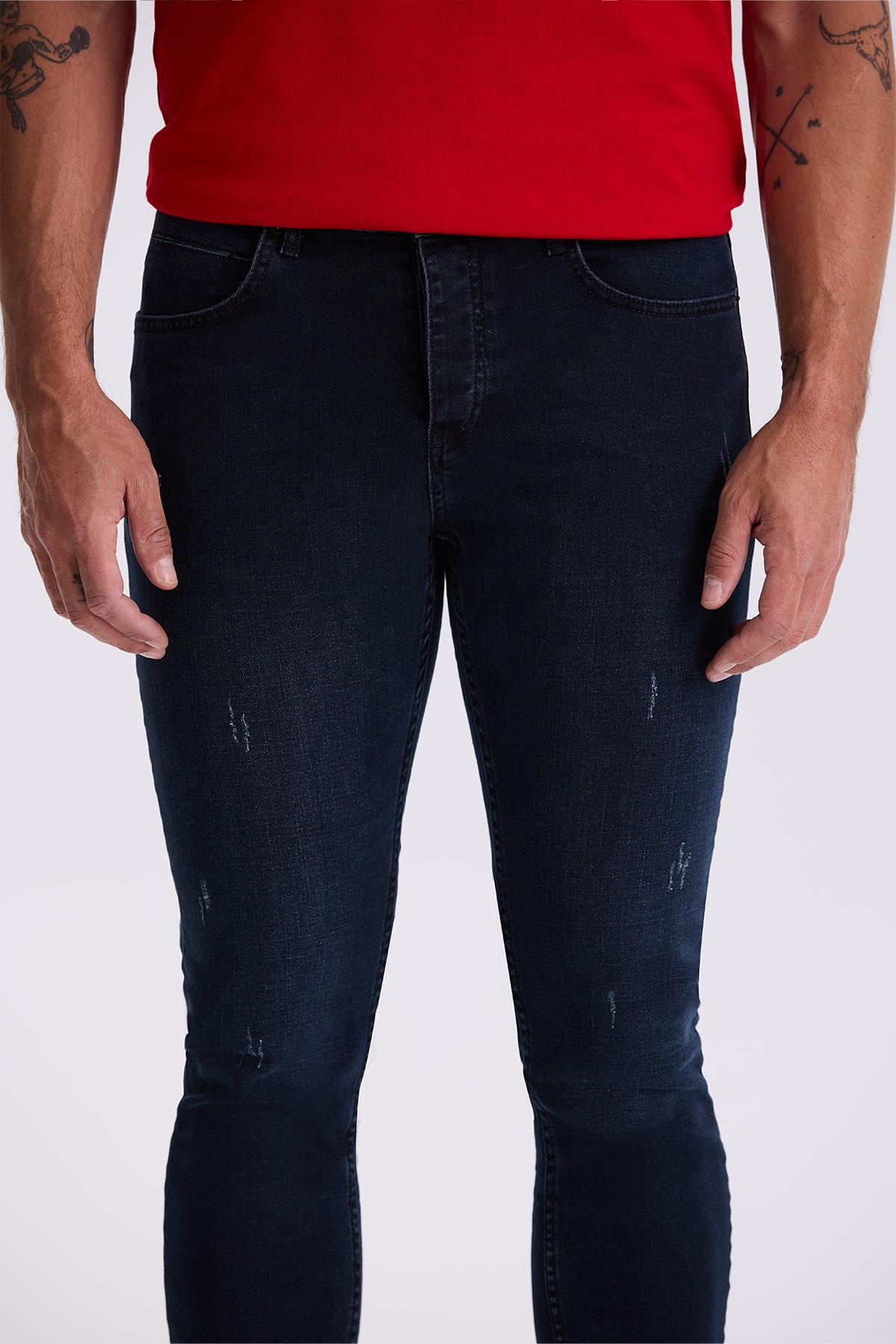 Lacivert Slim Fit Yıkamalı Pamuklu Dar Kalıp Jean Kot Pantolon