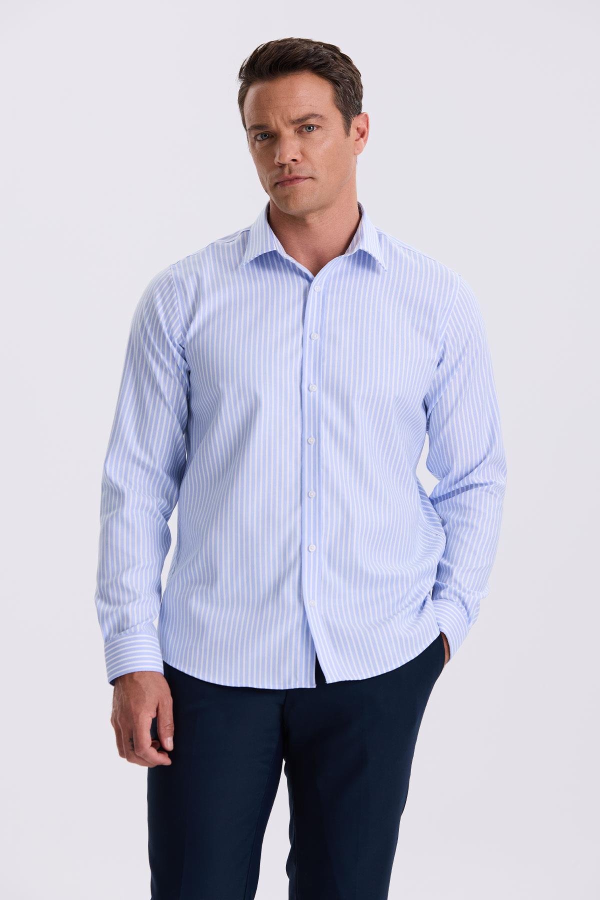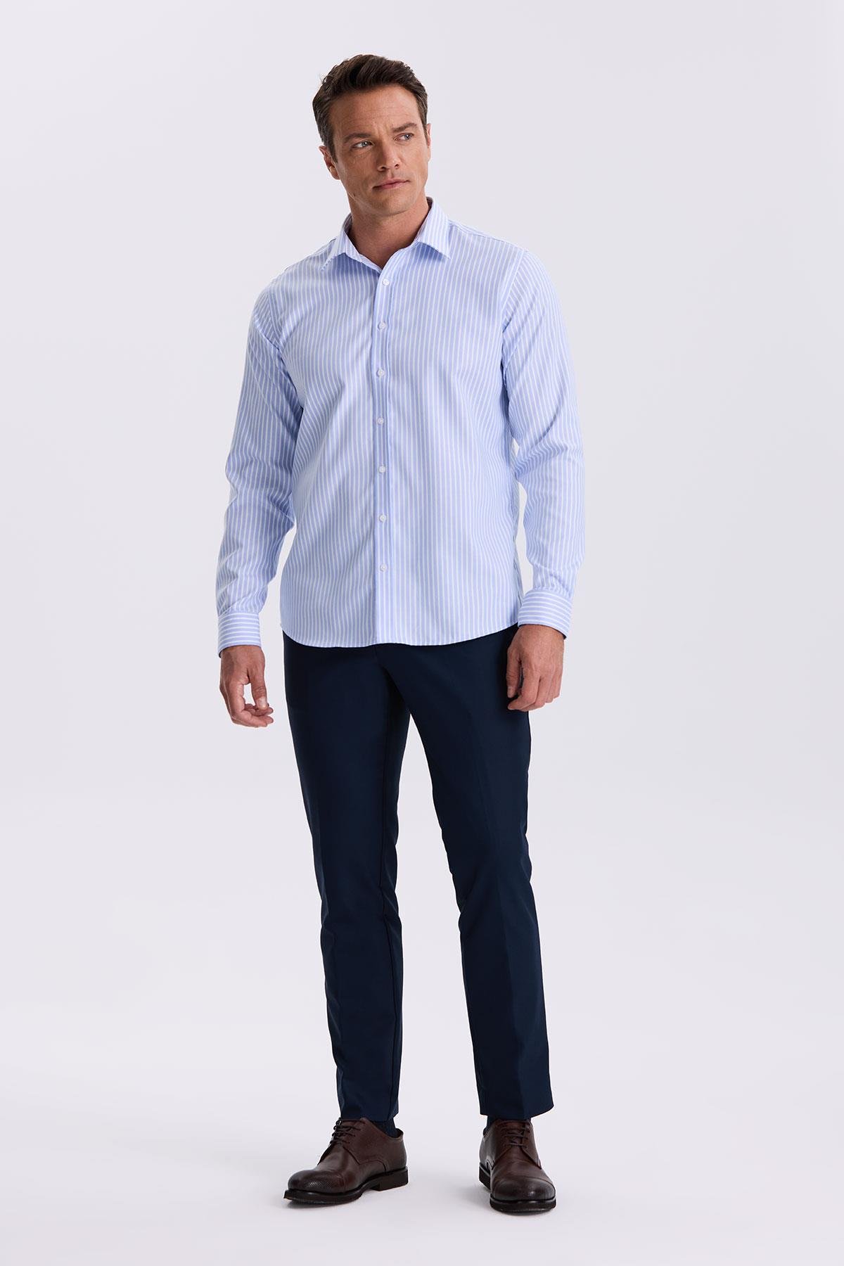 Mavi Beyaz Comfort Fit Ütü Gerektirmeyen %100 Pamuk Çizgili Non İron Gömlek