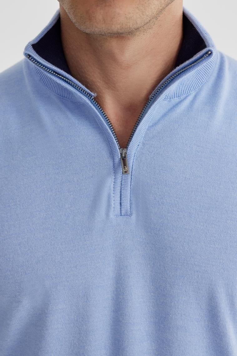 Mavi Slim Fit Fermuarlı Dik Yaka Triko Kazak