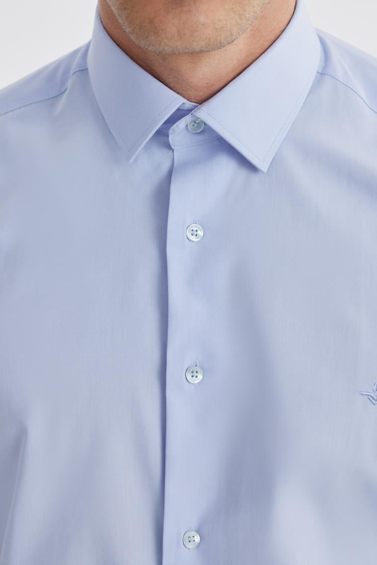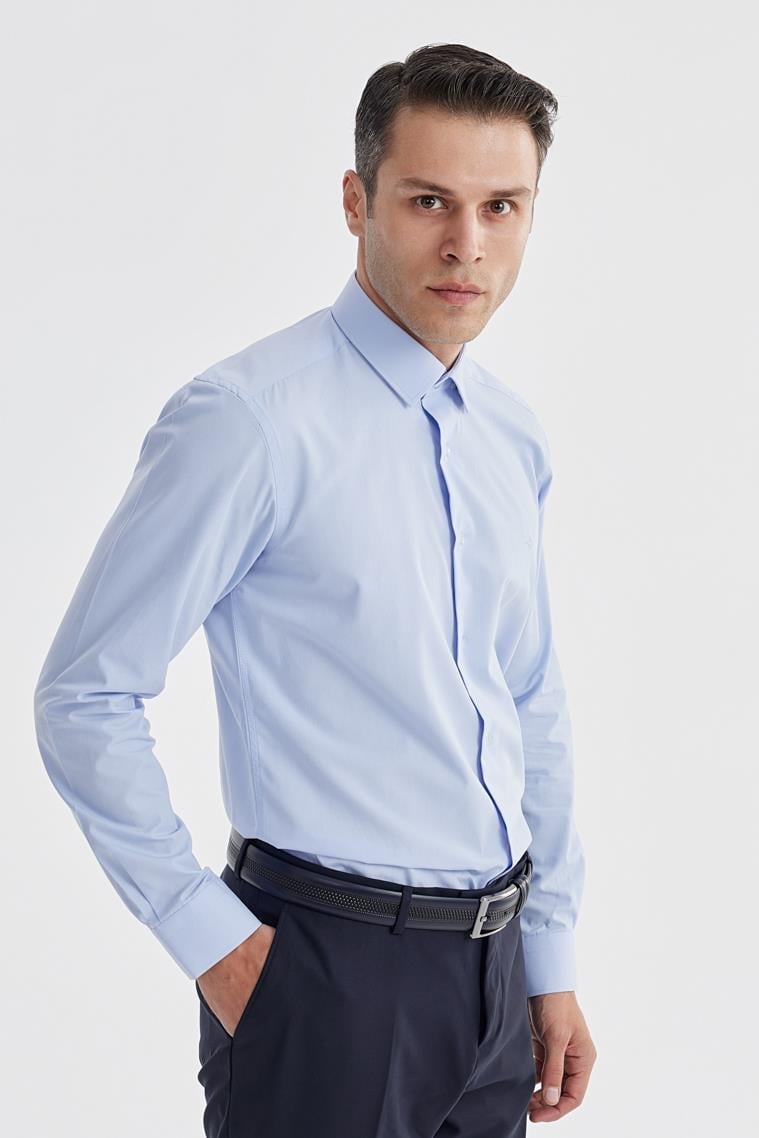 Mavi Slim Fit İtalyan Yaka Klasik Kravatlık Pamuklu Gömlek