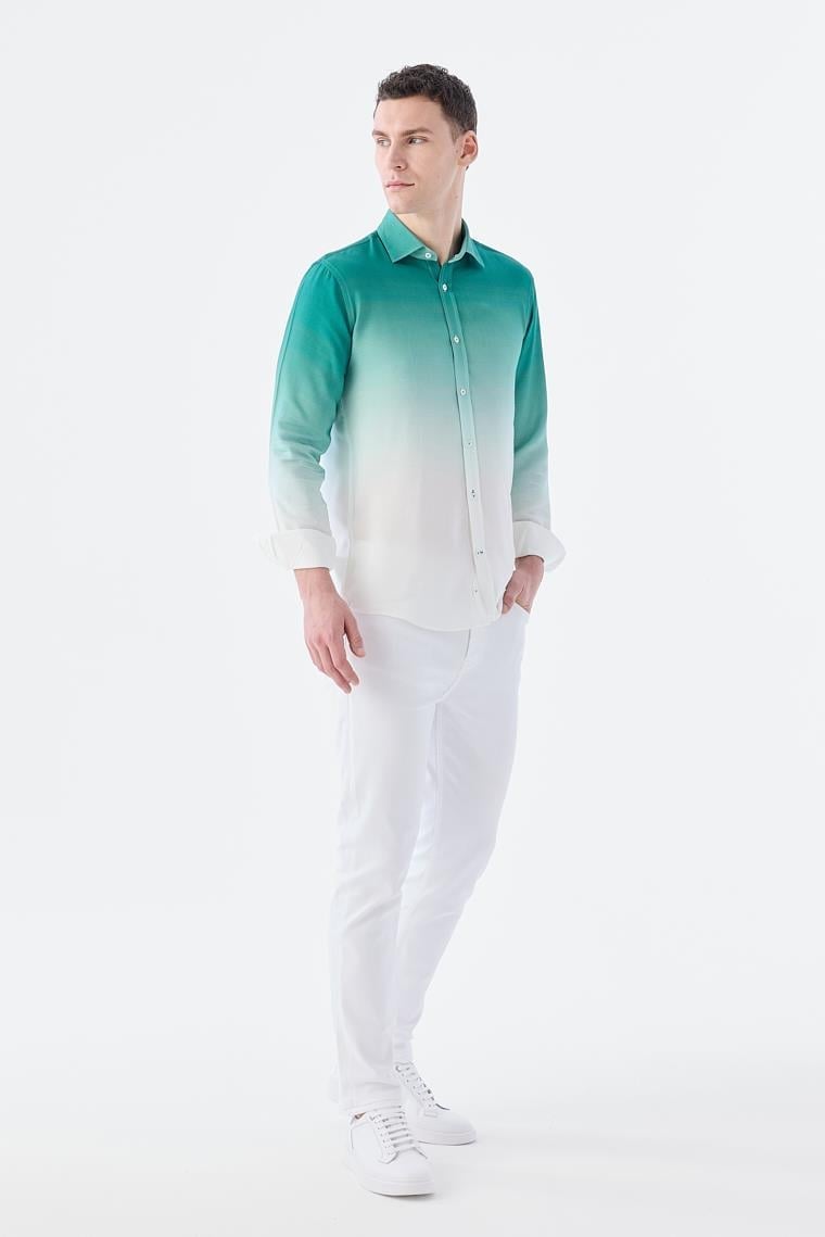 Rahat Kalıp - Comfort Fit Serili Gömlek-Jakamen Yaka Alttan Düğmeli Serili