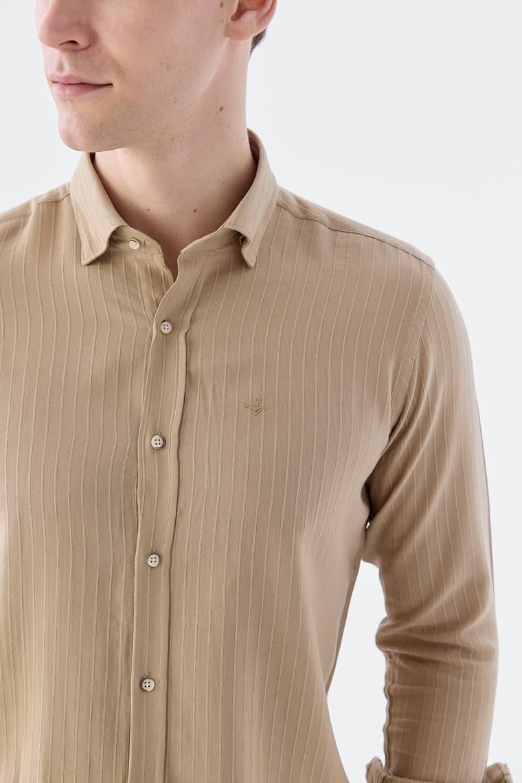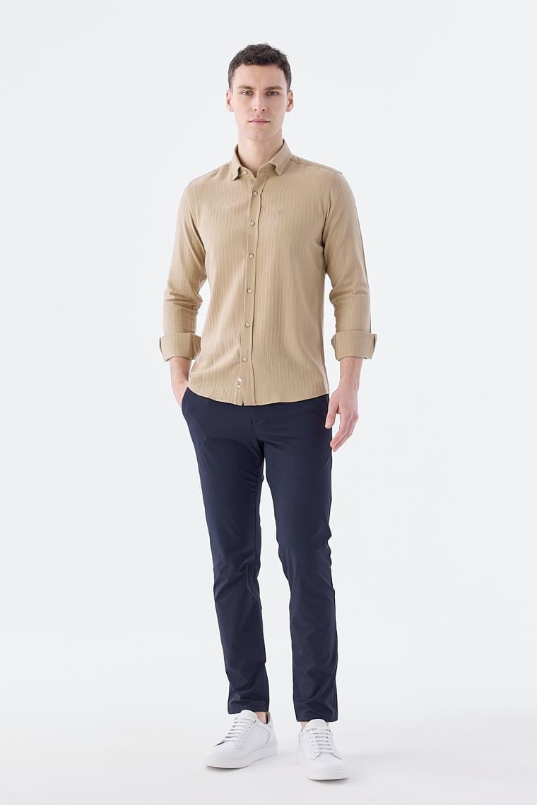 Rahat Kalıp - Comfort Fit Serili Gömlek-Jakamen Yaka Alttan Düğmeli Serili