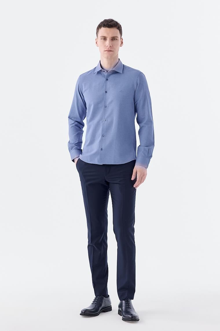 Rahat Kalıp - Comfort Fit Serili Gömlek-Jakamen Yaka Alttan Düğmeli Serili