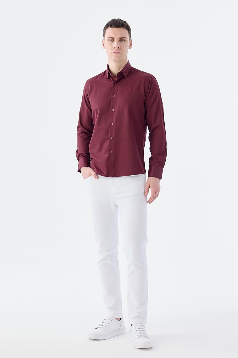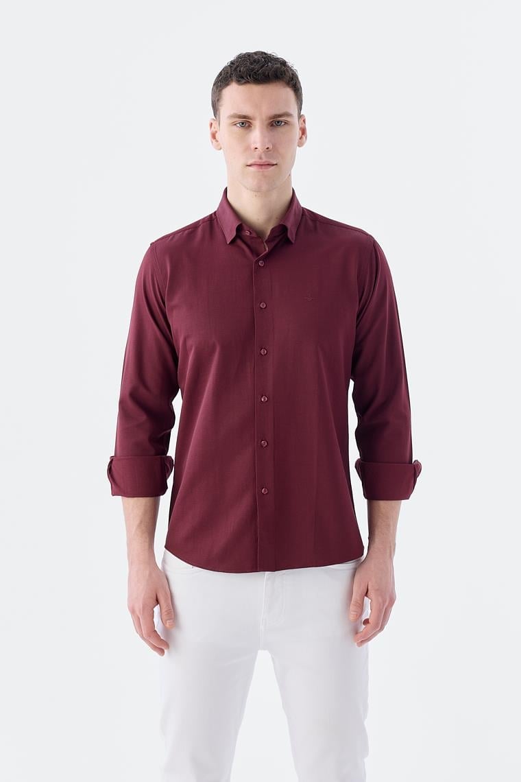 Rahat Kalıp - Comfort Fit Serili Gömlek-Jakamen Yaka Alttan Düğmeli Serili