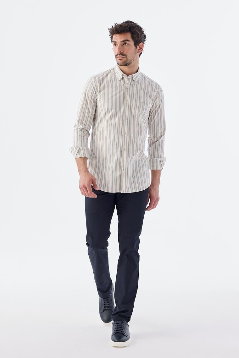 Rahat Kalıp - Comfort Fit Serili Gömlek-Jakamen YAKA ÜSTTEN DÜĞMELİ Serili