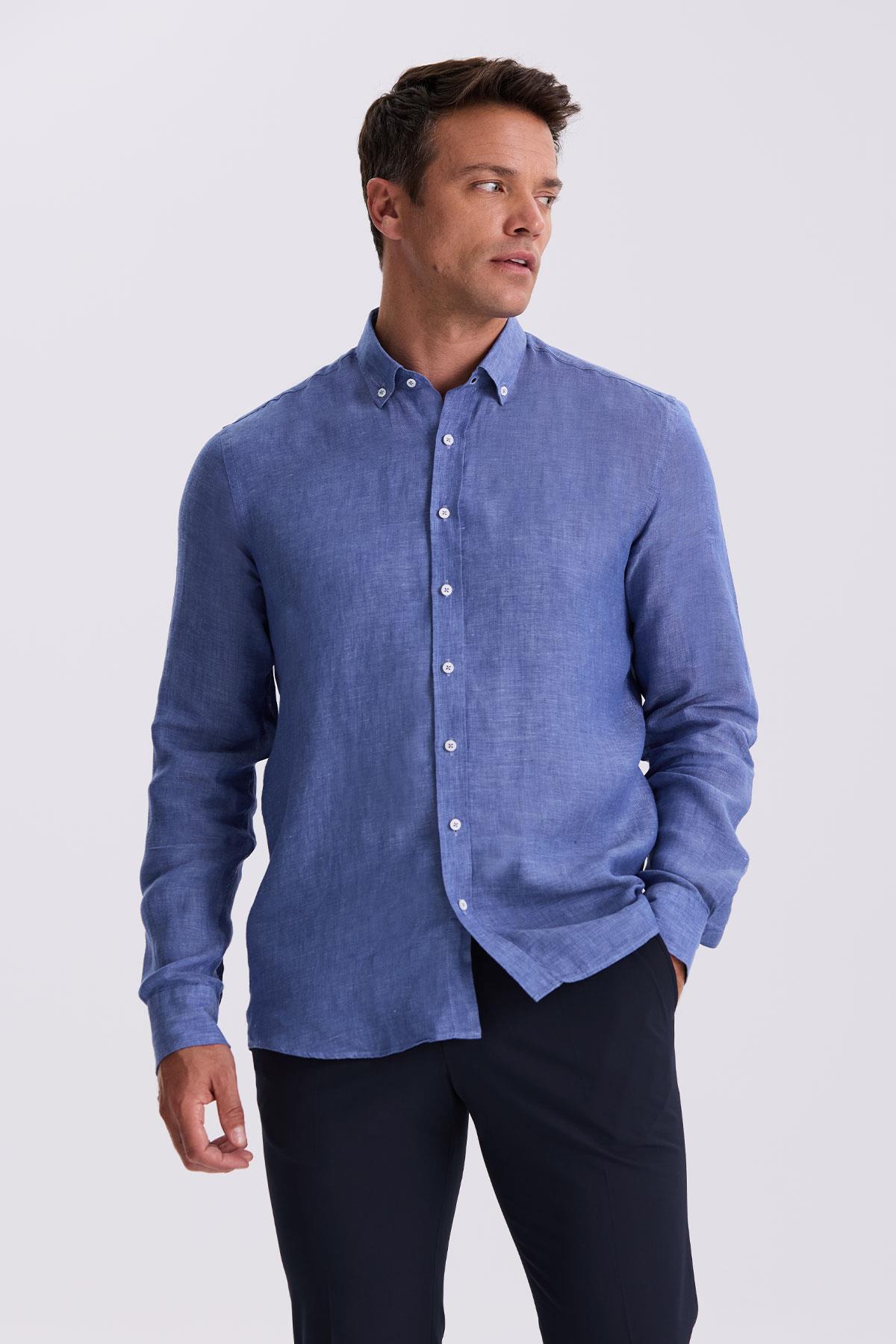 Saks %100 Keten Düğmeli Yaka Comfort Fit Gömlek