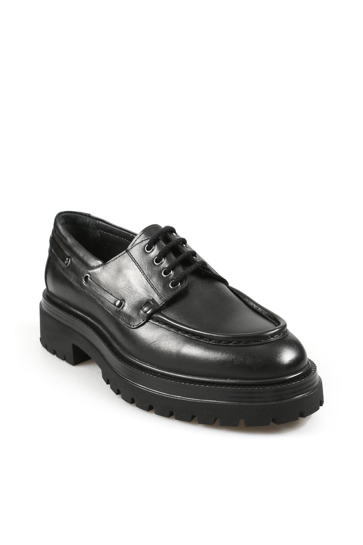 Siyah %100 Deri Bağcıklı Oxford Casual Ayakkabı