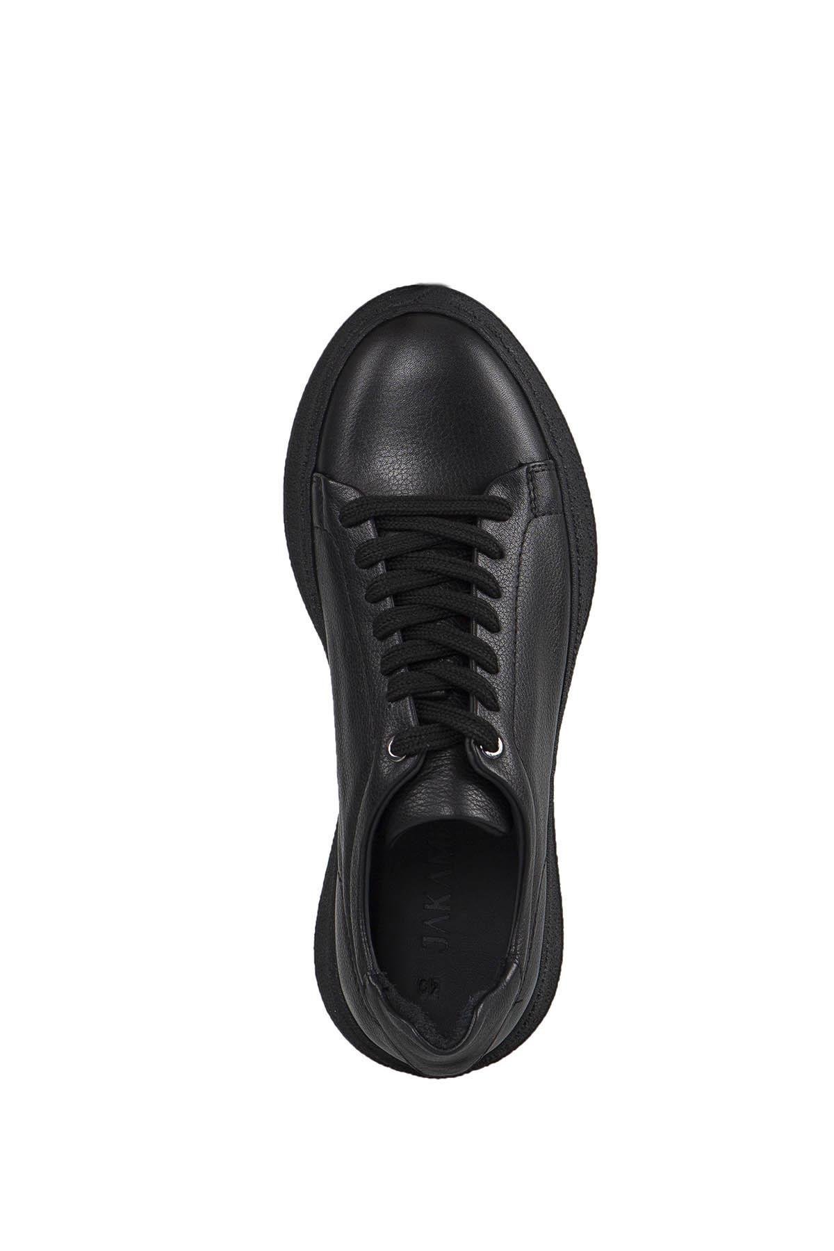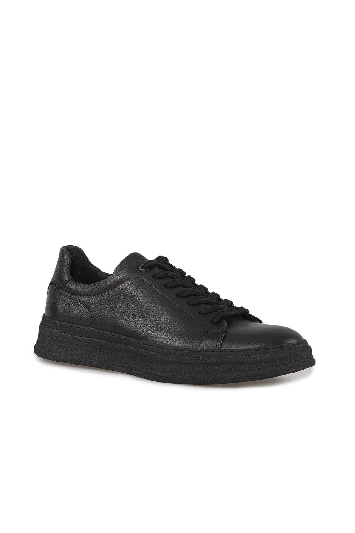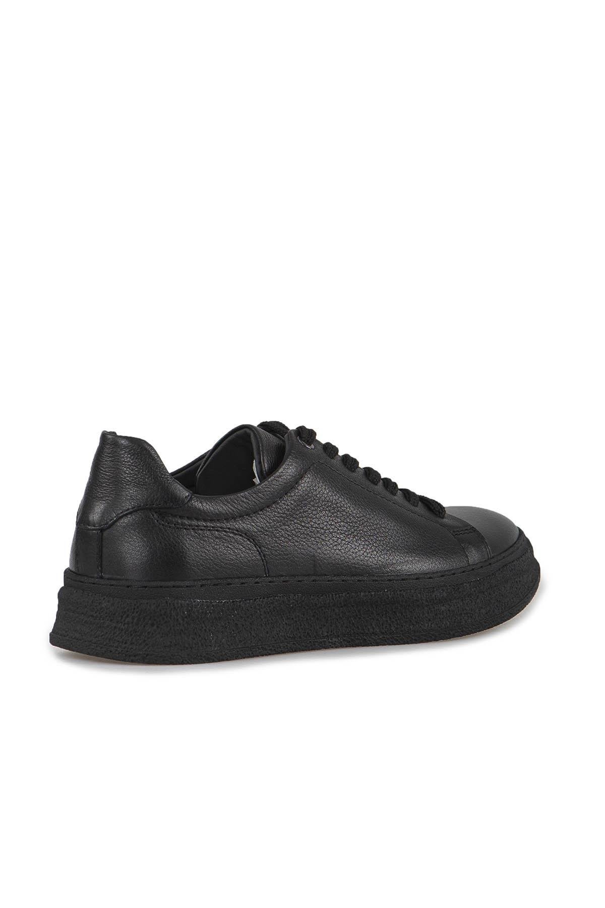 Siyah %100 Deri Dikişli Taban Sneaker Ayakkabı