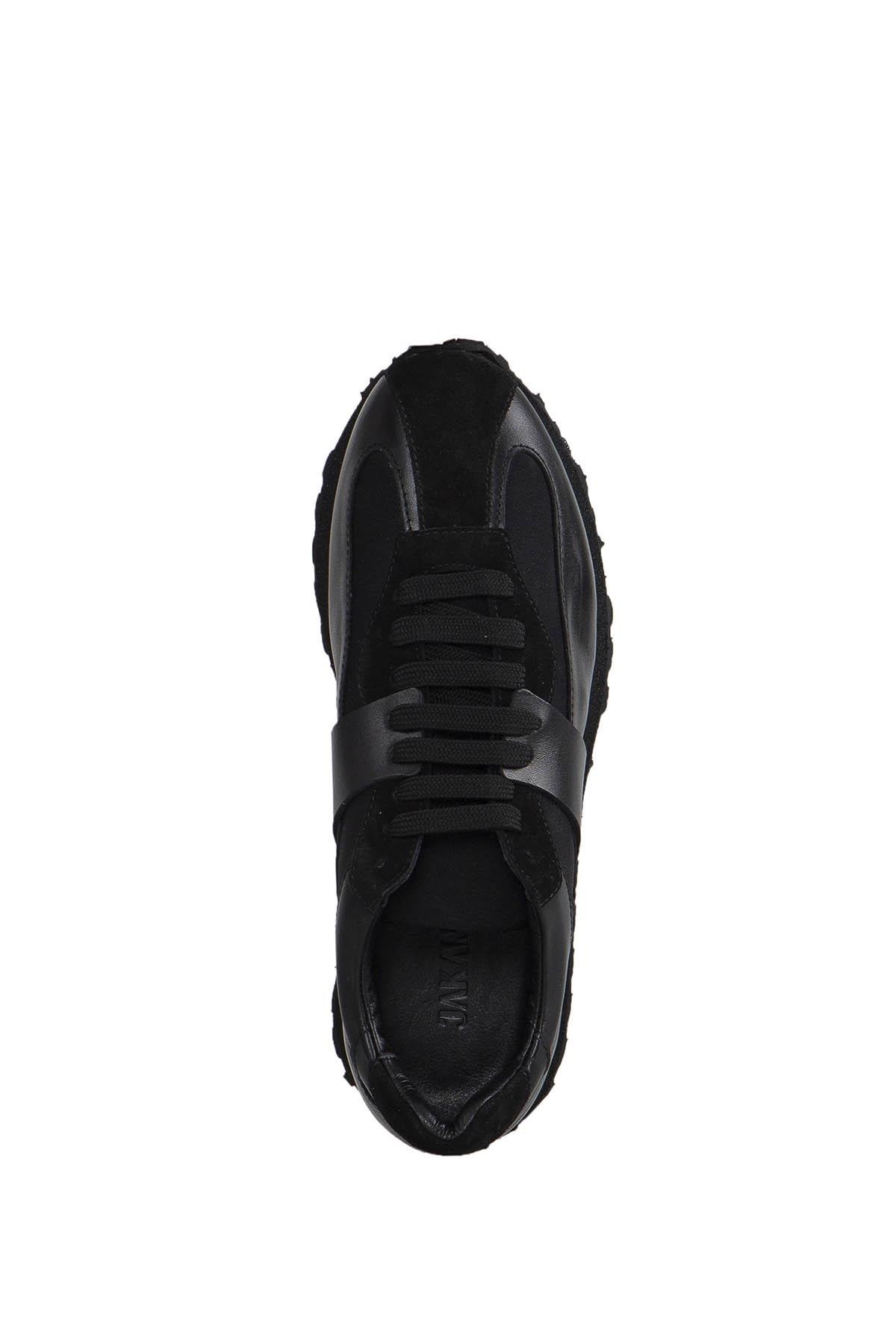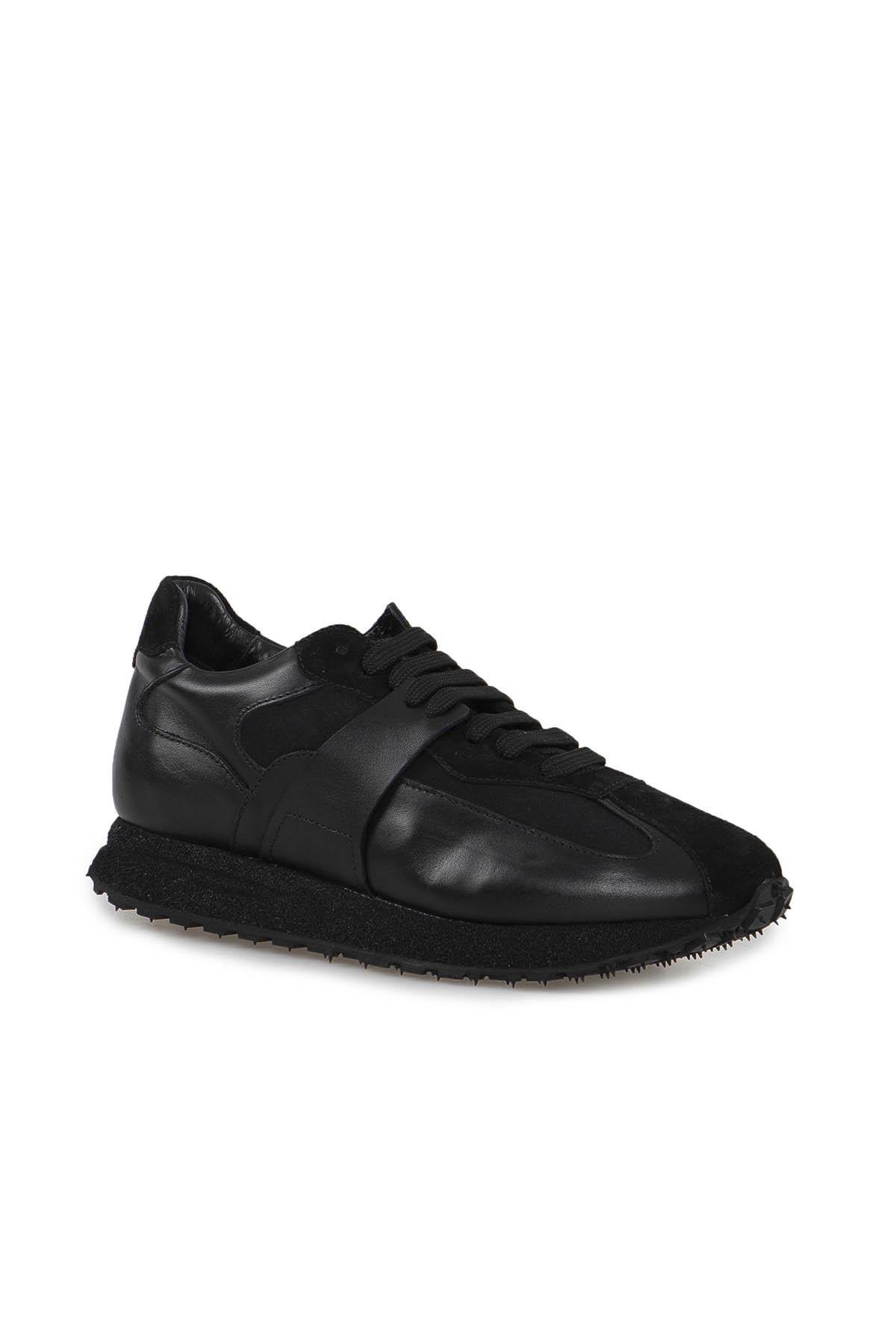 Siyah %100 Deri Eva Taban Sneaker Ayakkabı