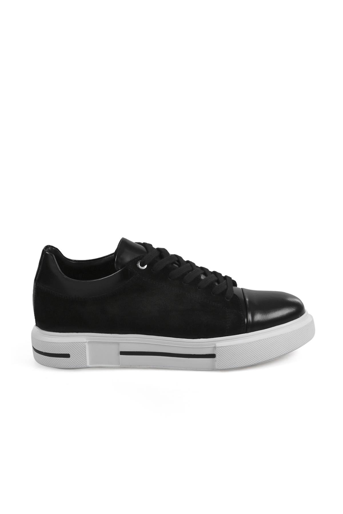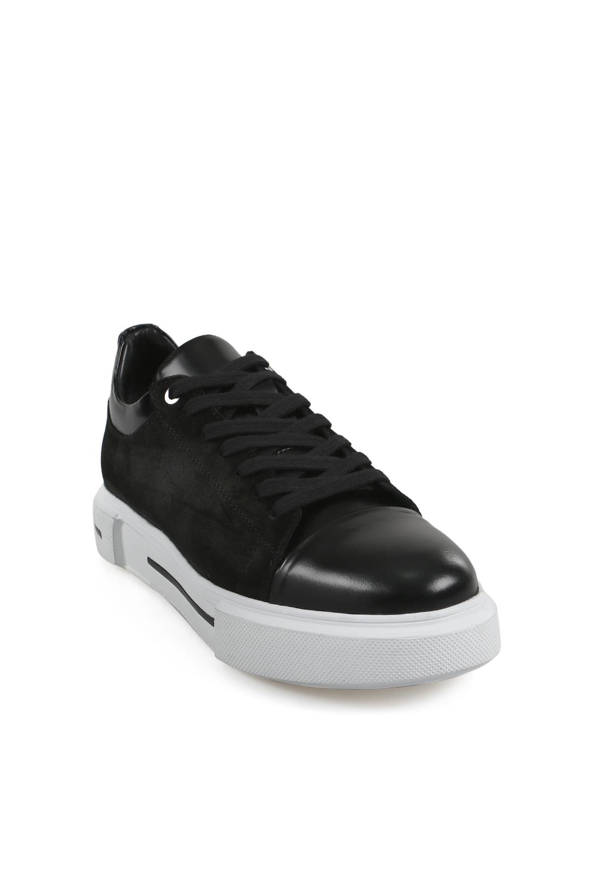 Siyah %100 Deri Havuzlu Taban Sneaker Ayakkabı