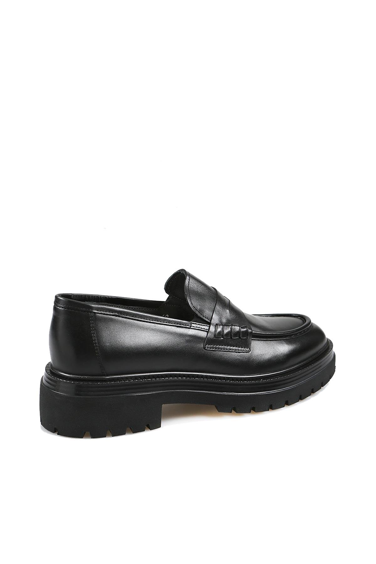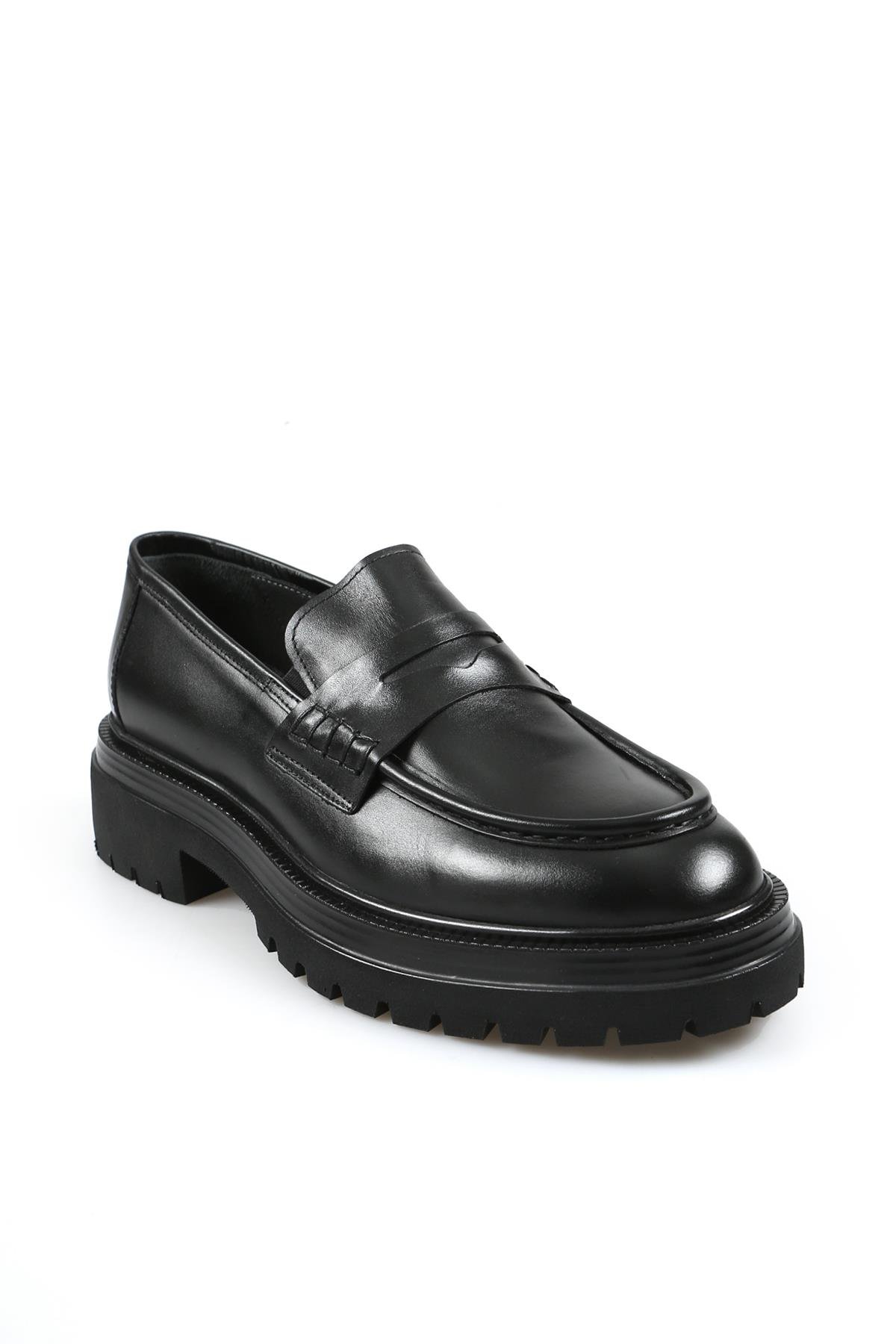 Siyah %100 Deri Yüksek Taban Loafer Ayakkabı