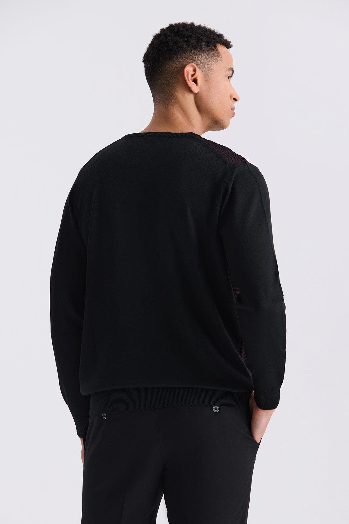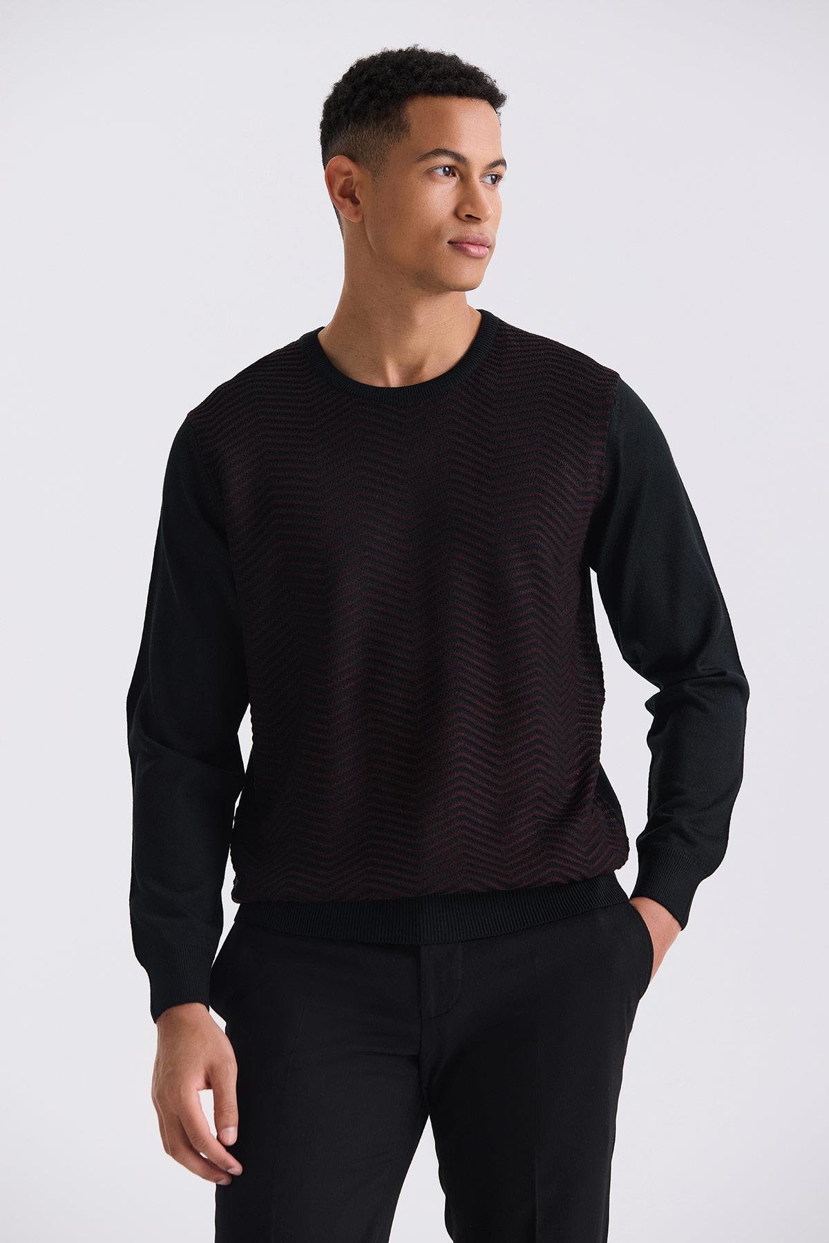 Siyah Classic Fit Desenli Bisiklet Yaka Triko Kazak