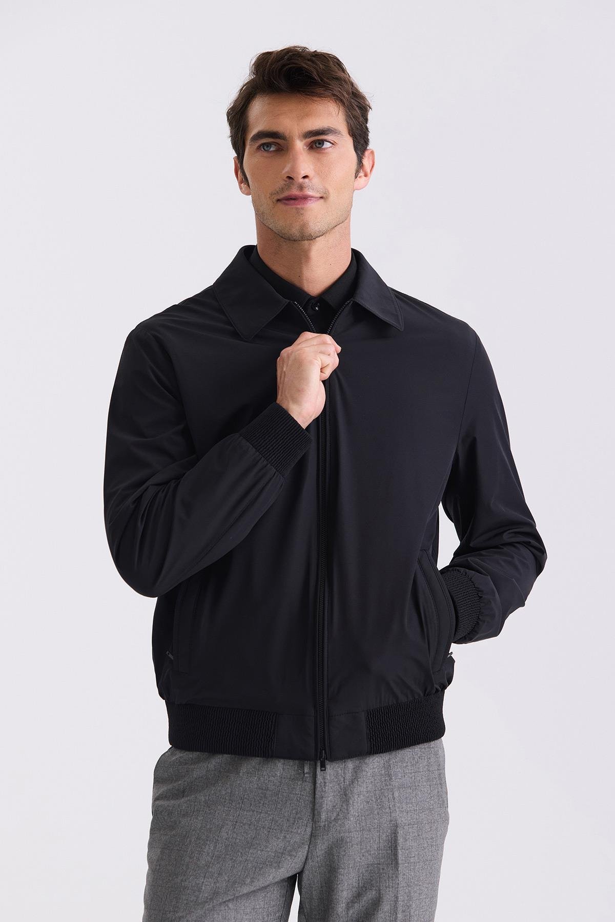 Siyah Comfort Fit Bebe Yaka Mevsimlik Mont