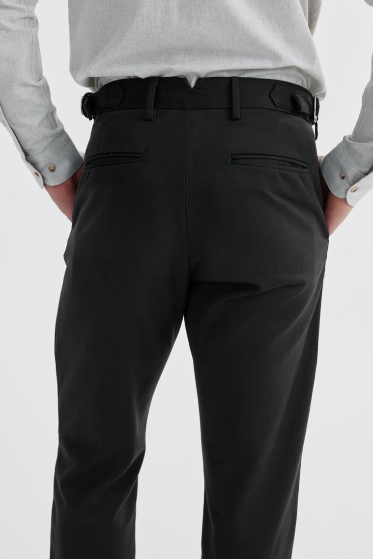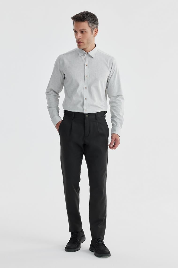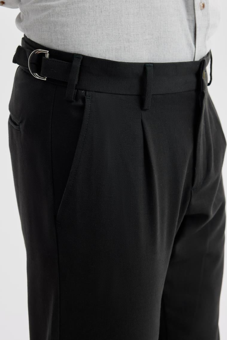 Siyah Comfort Fit Çift Pileli Beli Tokalı Pamuklu Kanvas Pantolon