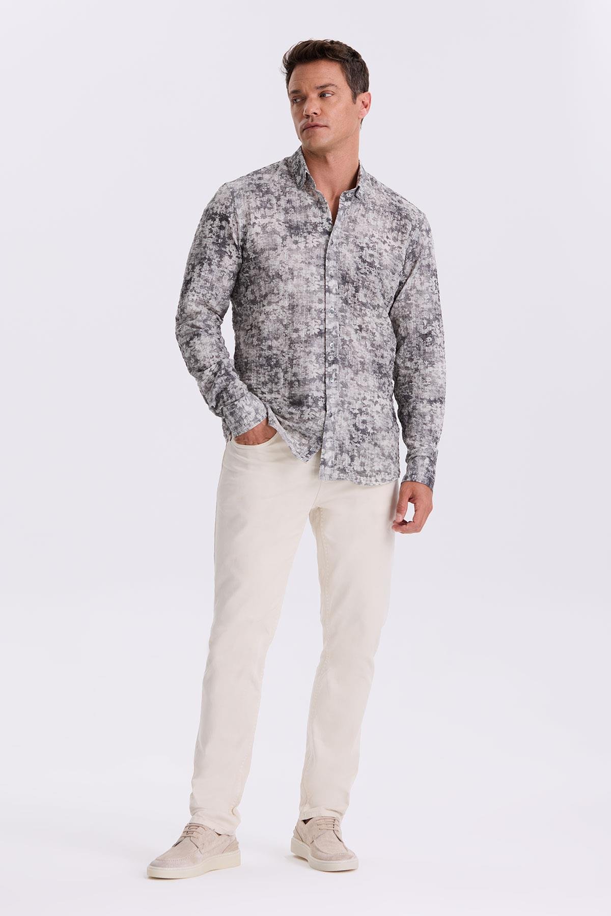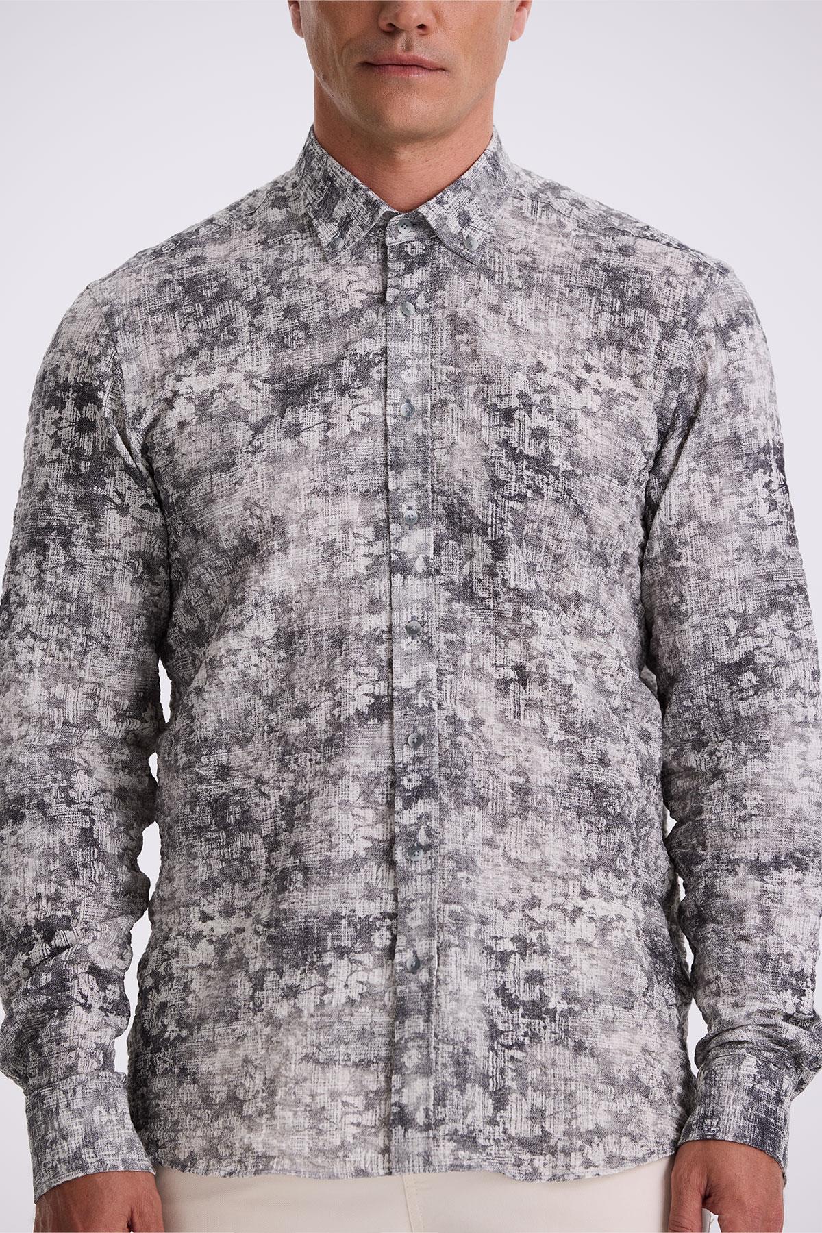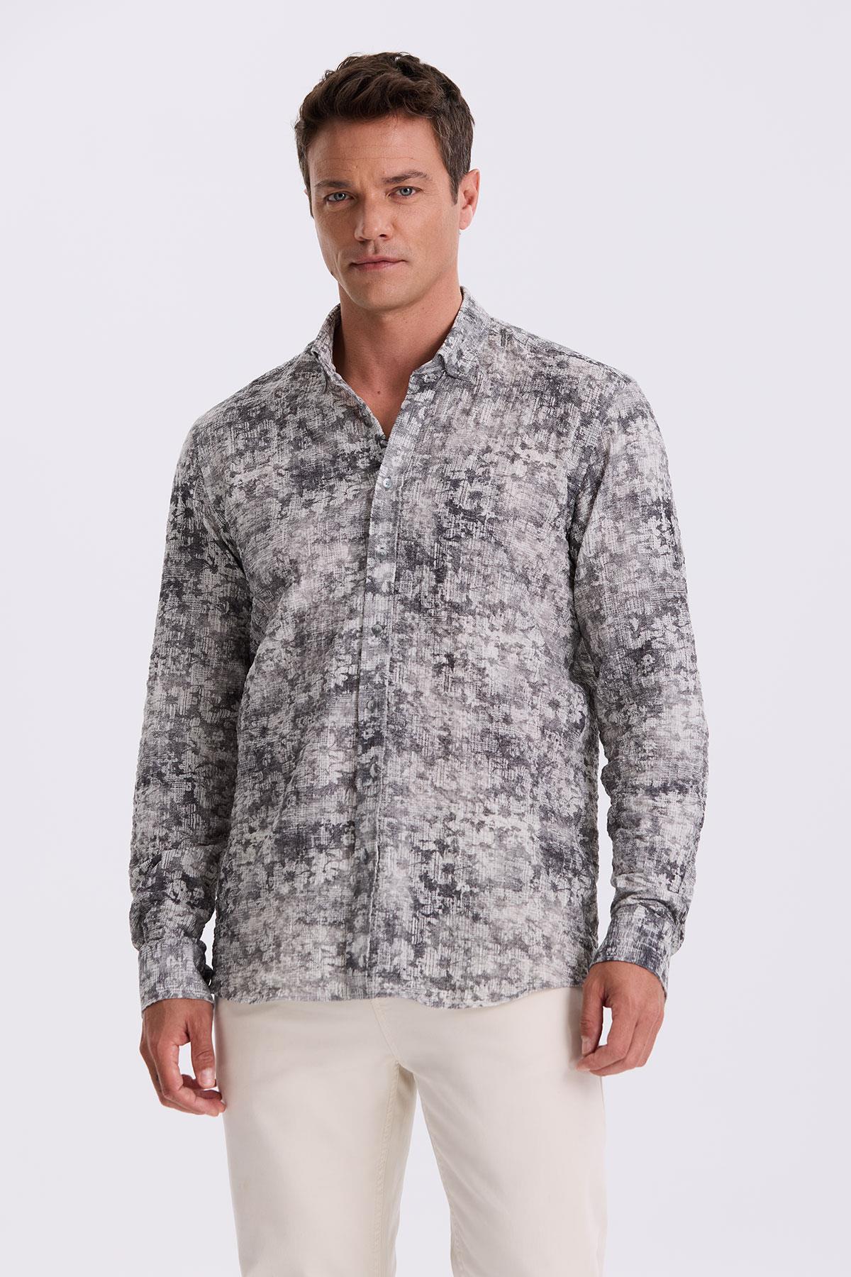 Siyah Desenli Düğmeli Yaka Comfort Fit Gömlek (JK39CF01M044_001)