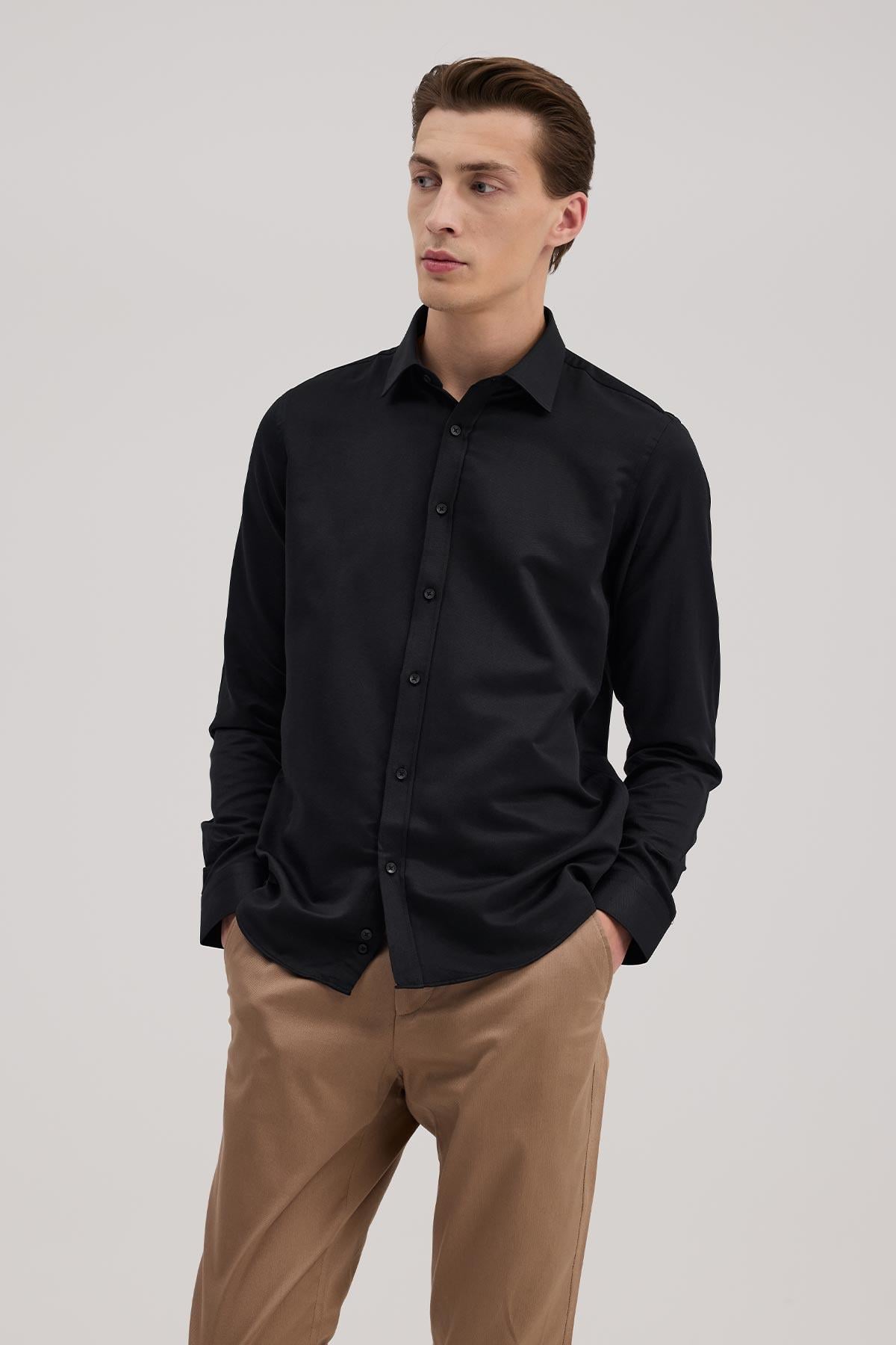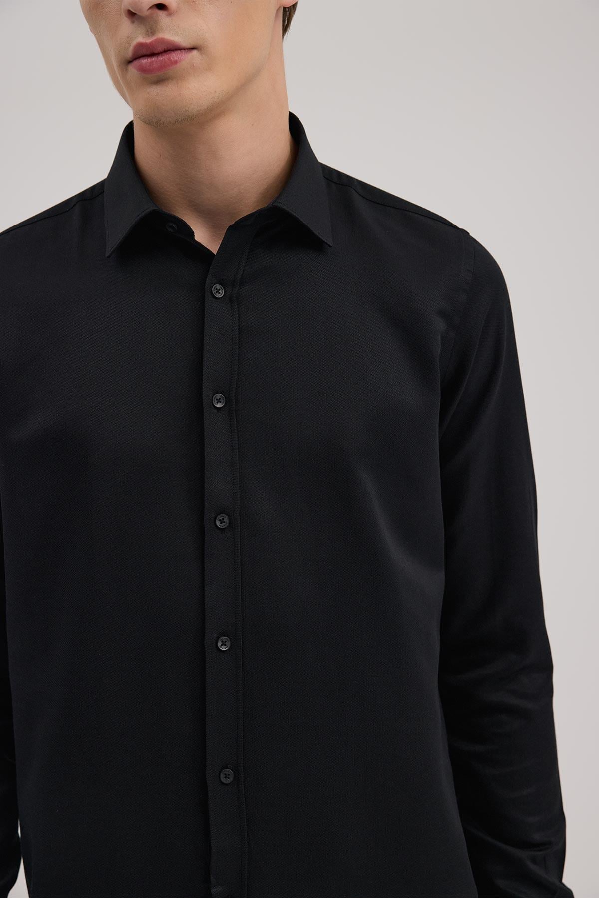 Siyah Rahat Kalıp - Comfort Fit Gömlek İtalyan YAKA