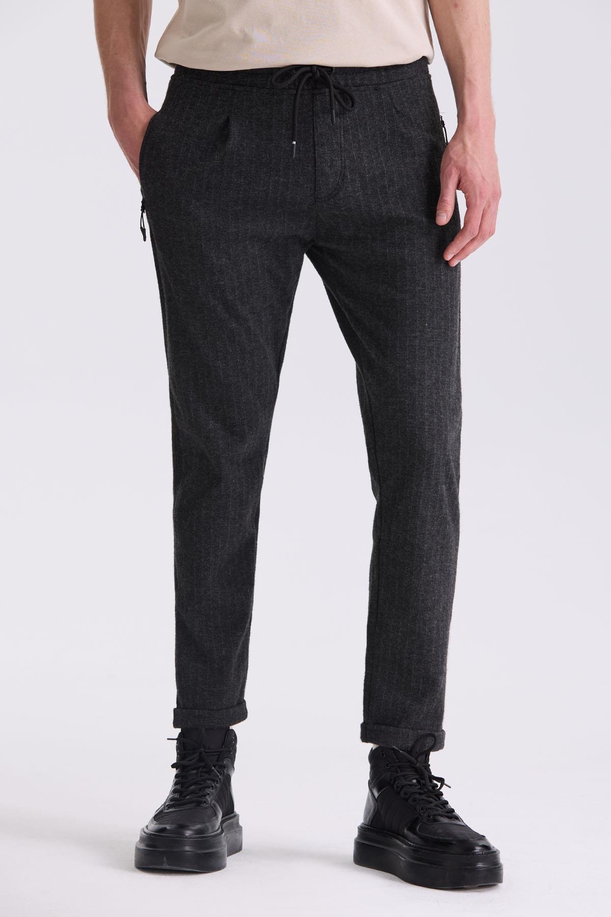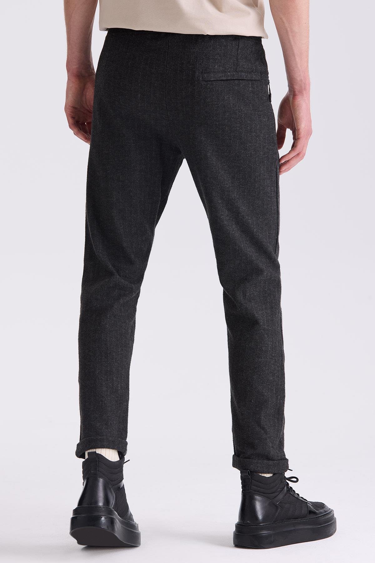Siyah Slim Fit Beli Lastikli Çizgili Jogger Pantolon