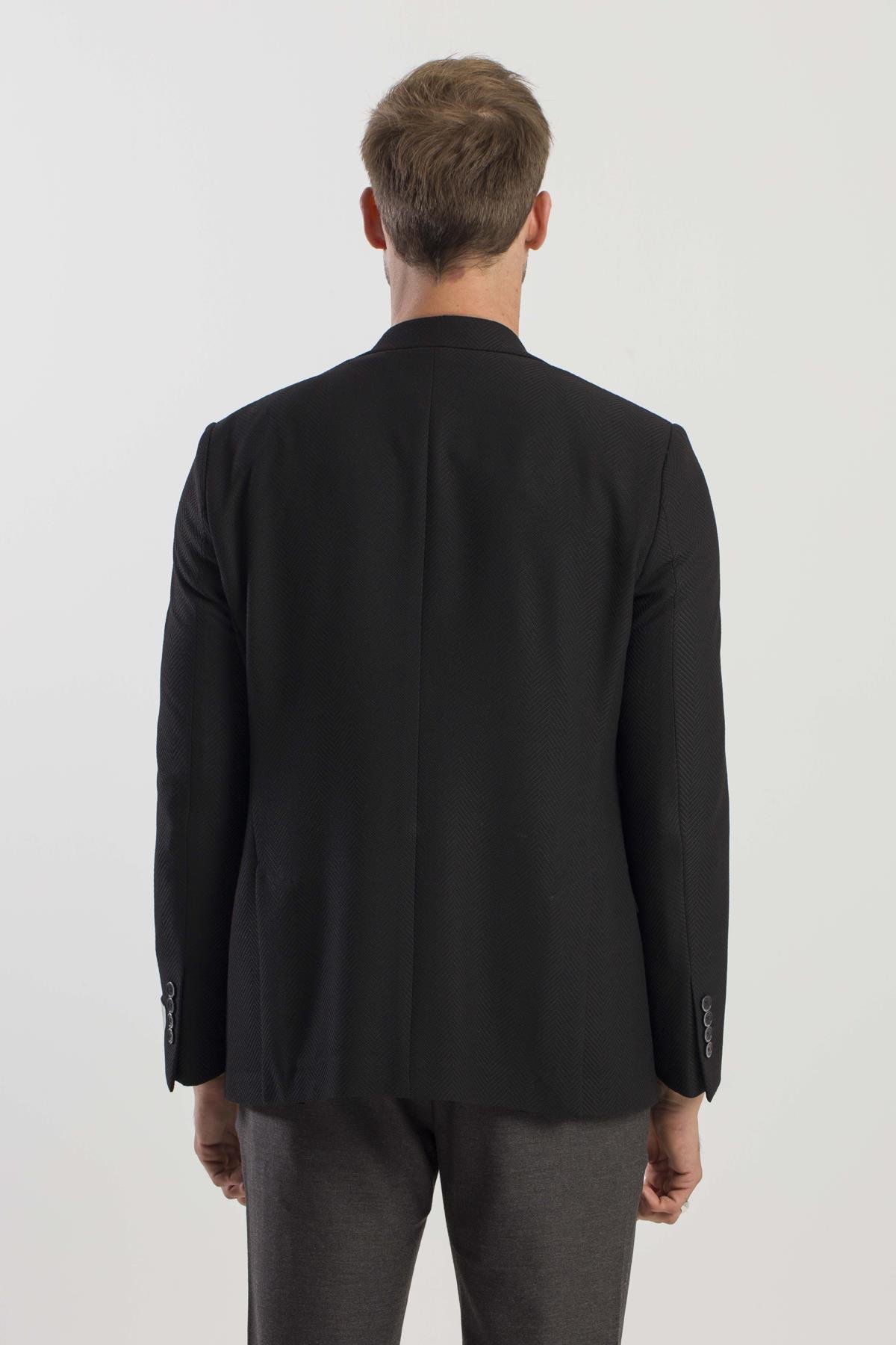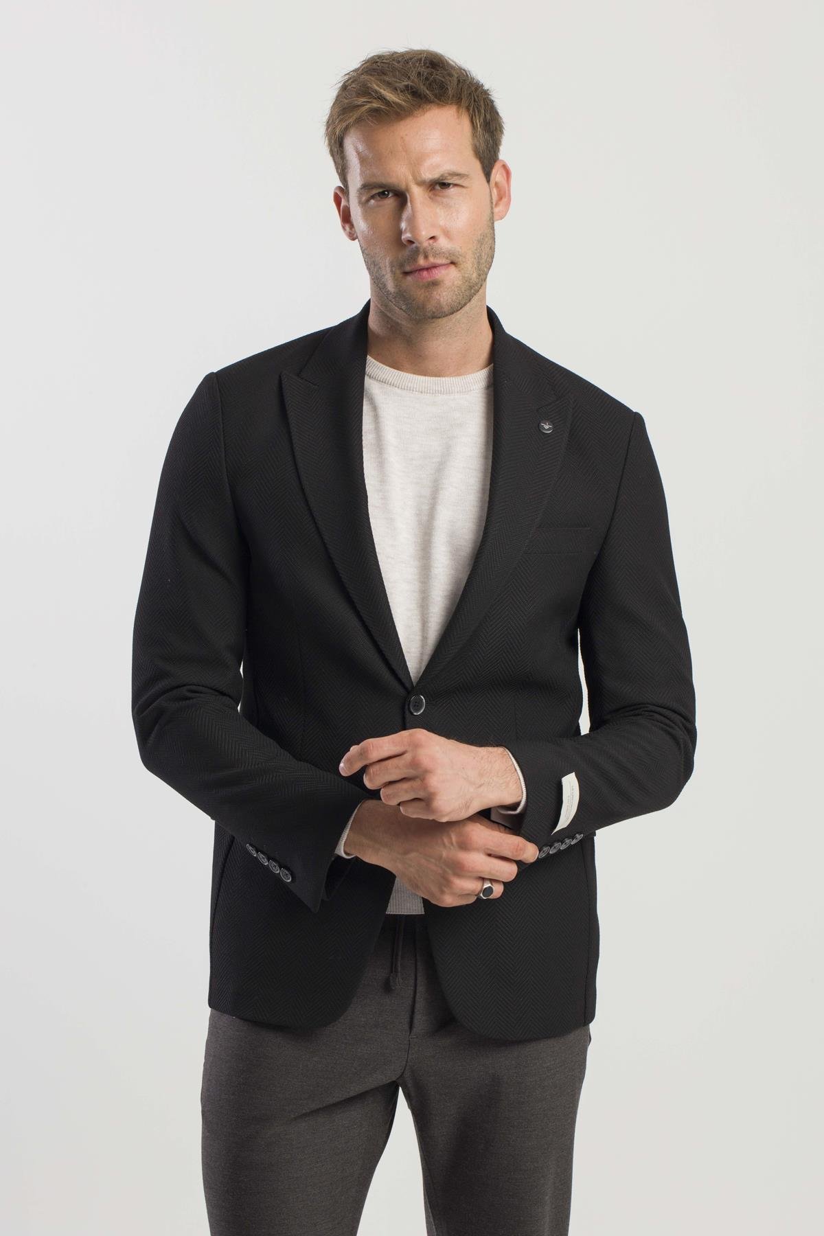 Siyah Slim Fit Desenli Sivri Yaka Ceket