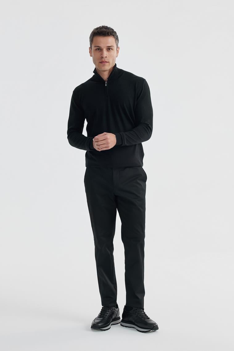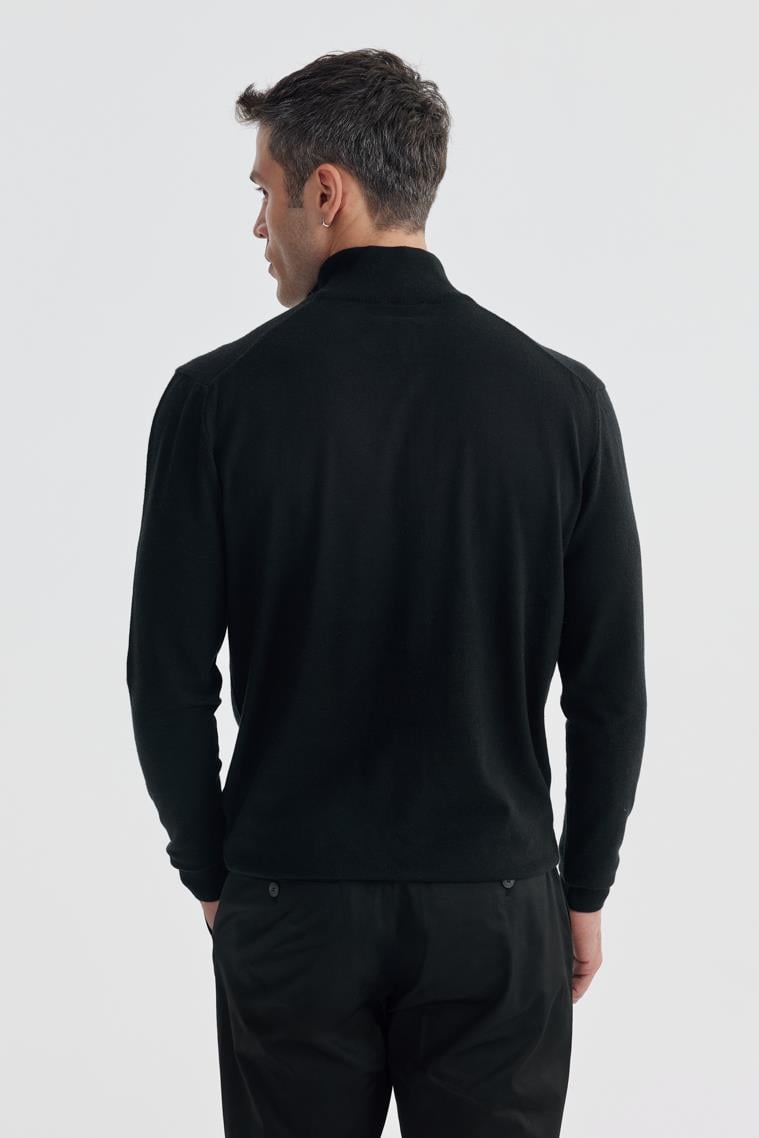Siyah Slim Fit Fermuarlı Dik Yaka Triko Kazak