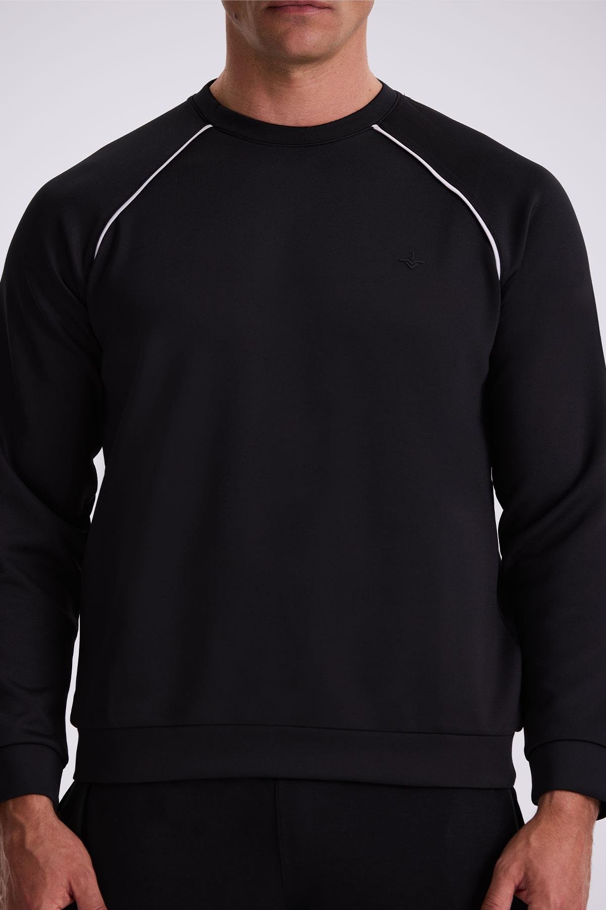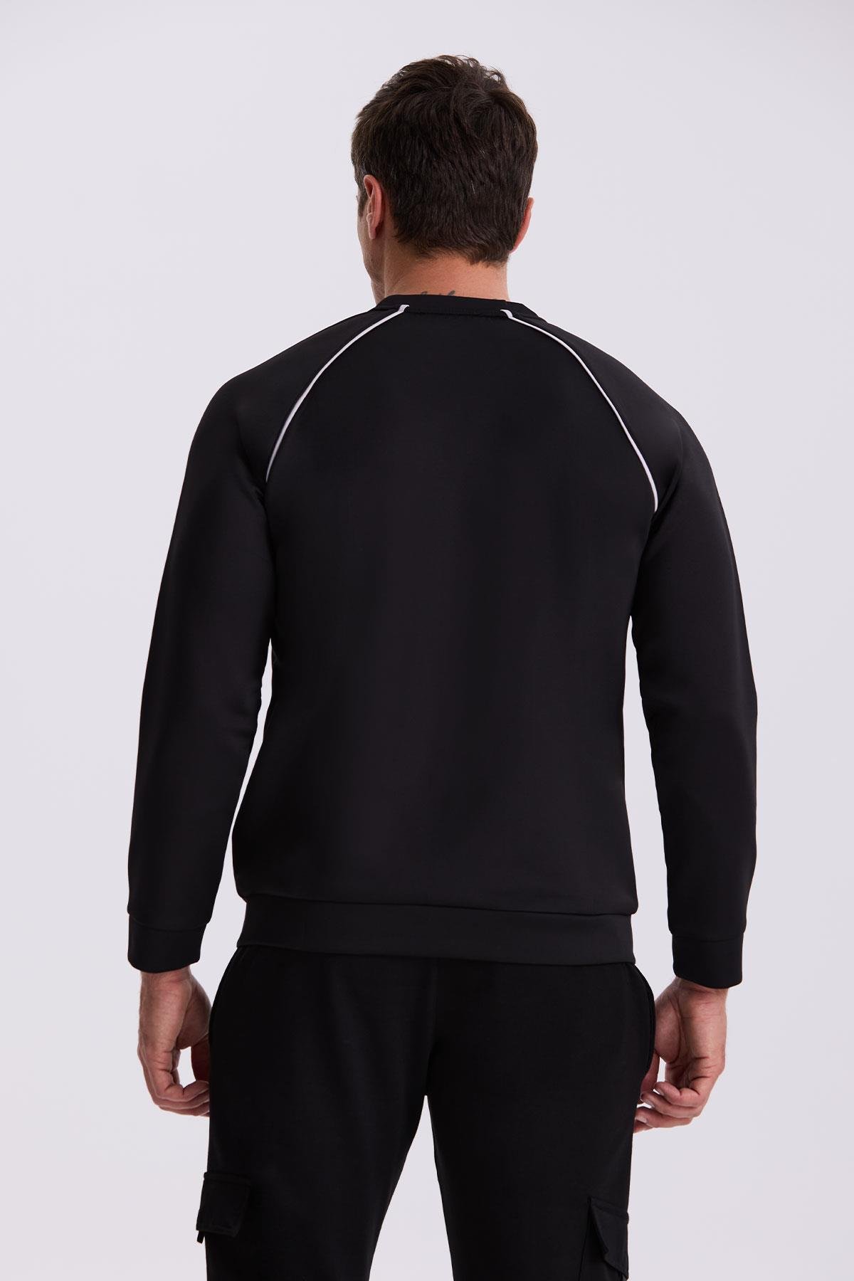 Siyah Slim Fit Pamuk Karışımlı Bisiklet Yaka Sweatshirt