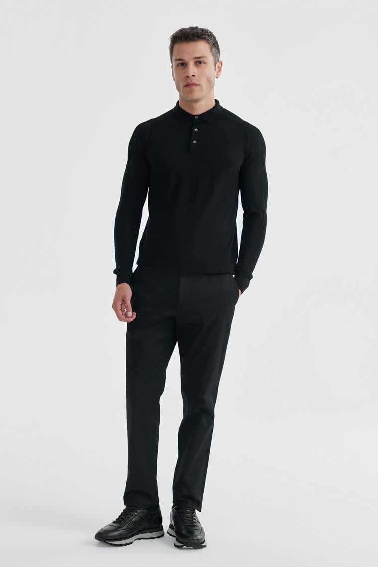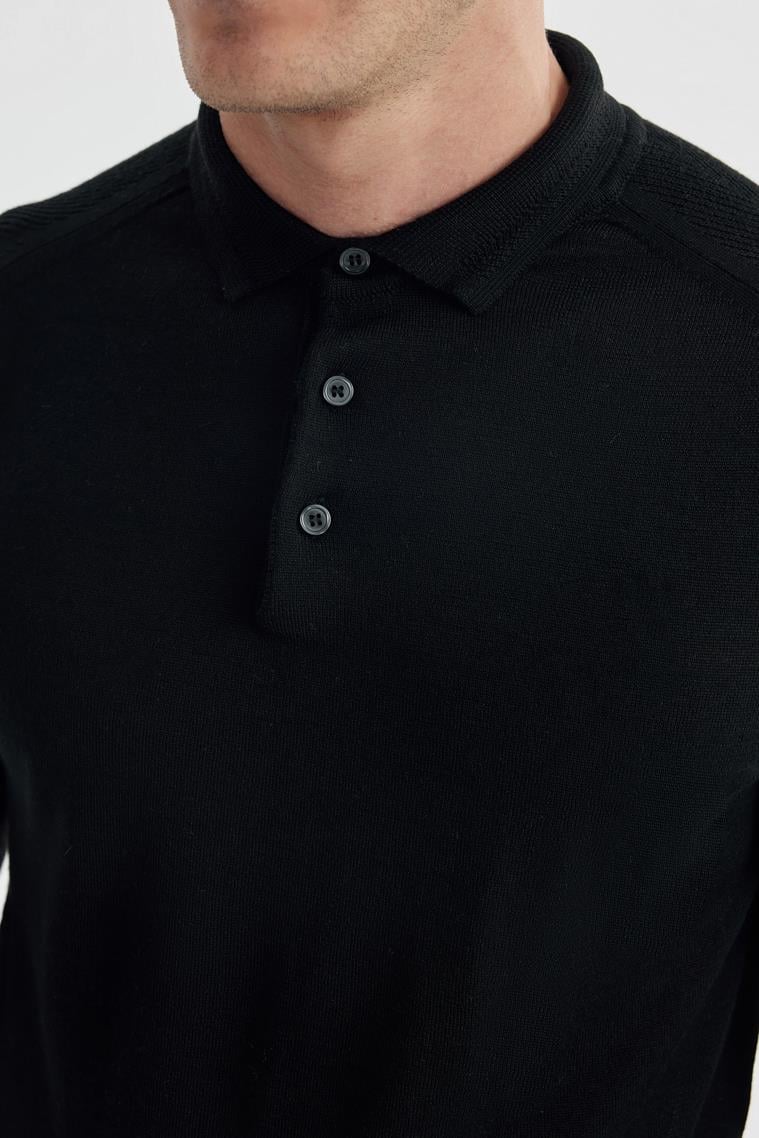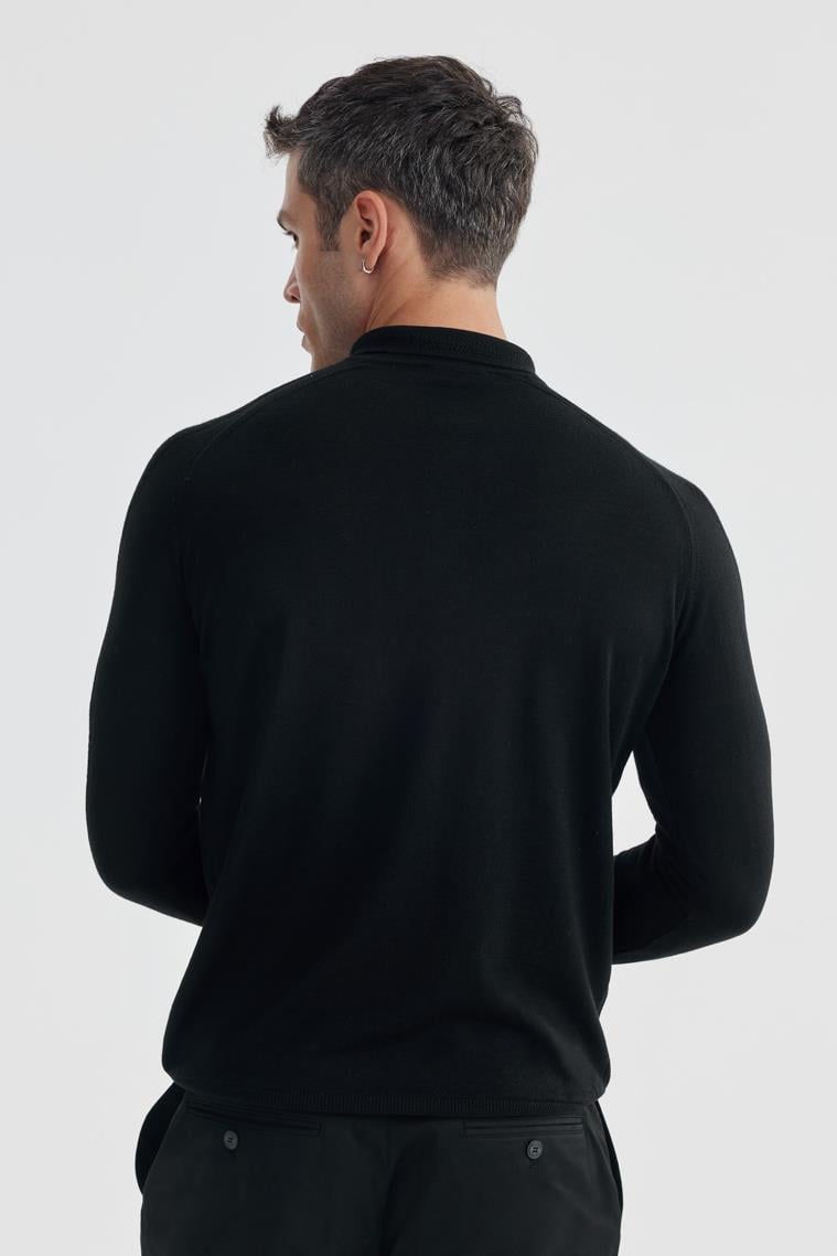 Siyah Slim Fit Yünlü Desenli Polo Yaka Triko