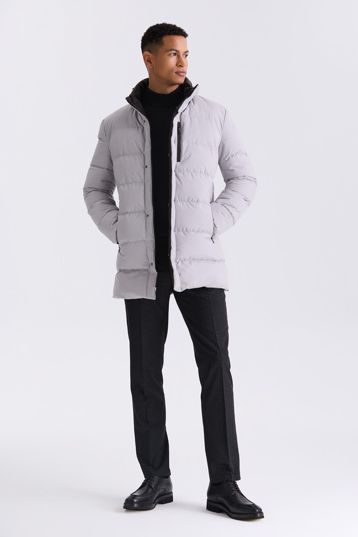Taş Regular Fit Hakim Yaka Fermuarlı Kışlık Şişme Mont