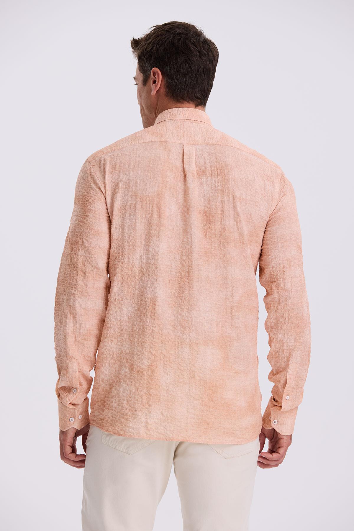 Turuncu Comfort Fit Gofre Kumaş Düğmeli Yaka Desenli Gömlek