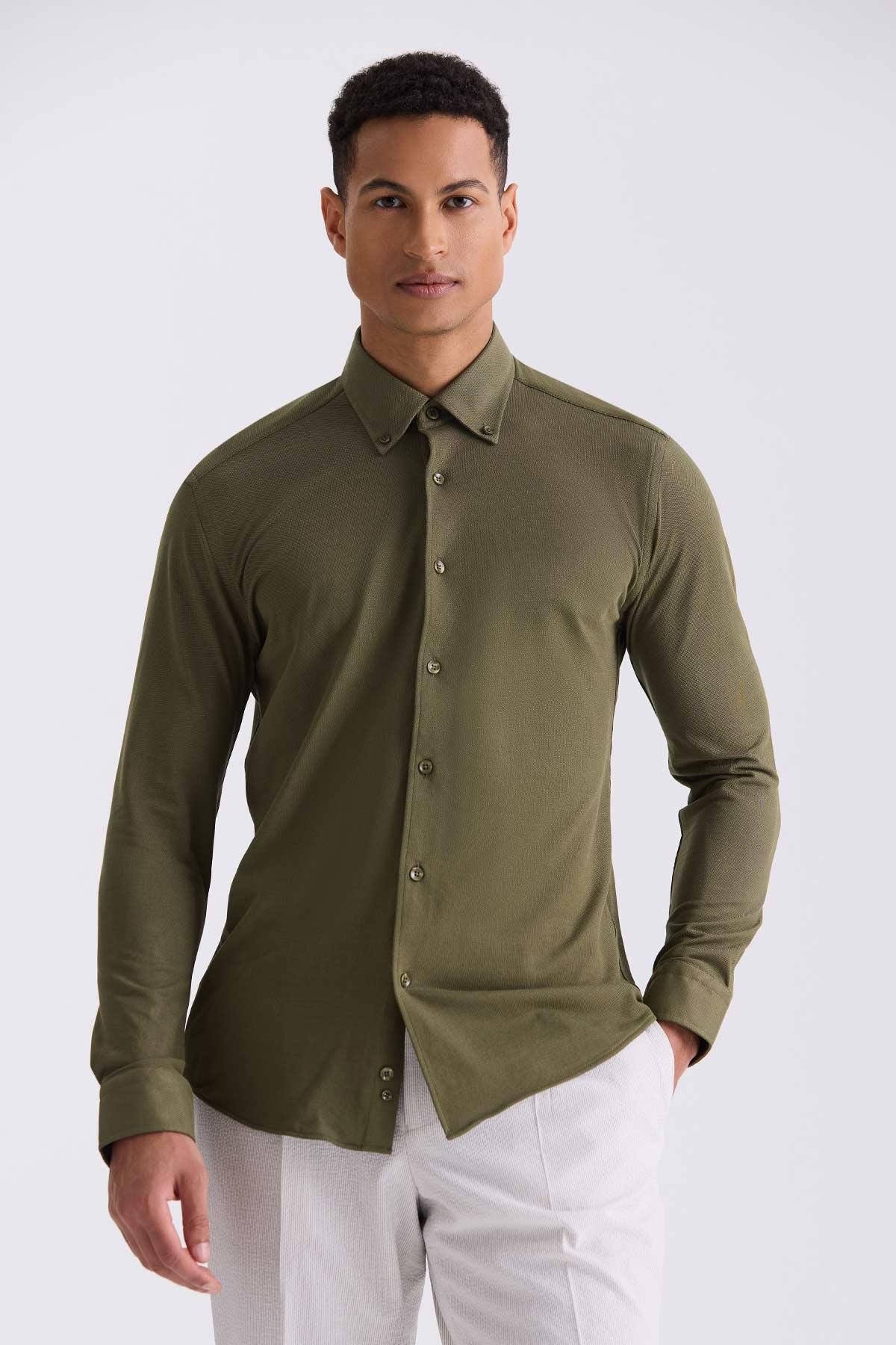 Yeşil Comfort Fit Düğmeli Yaka Pamuklu Gömlek (JK39CF01M041_523)