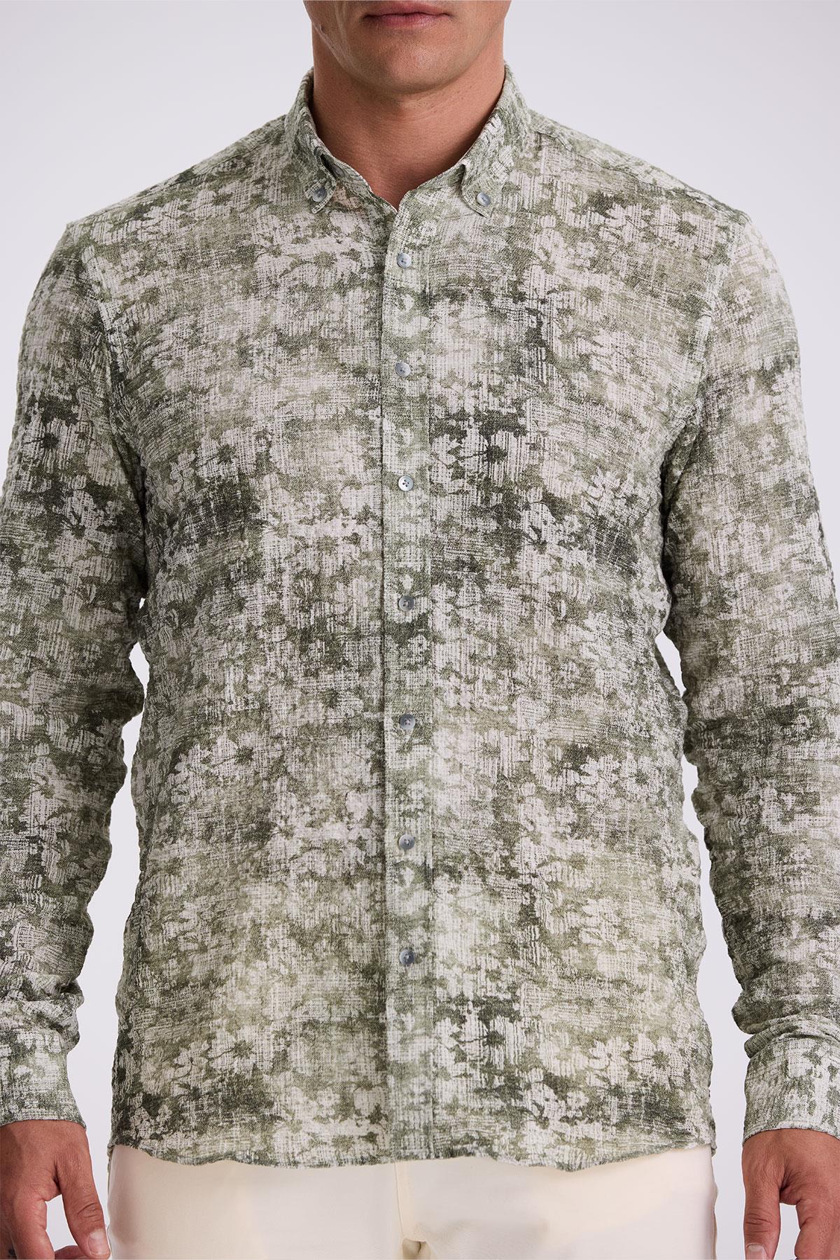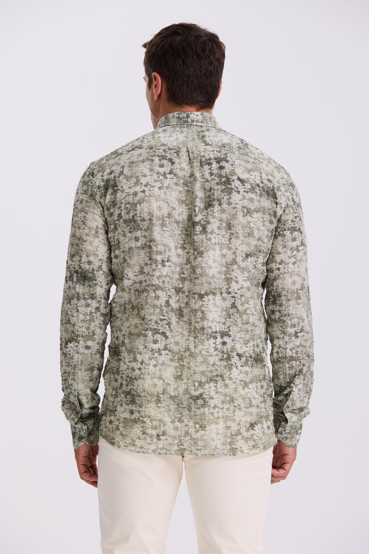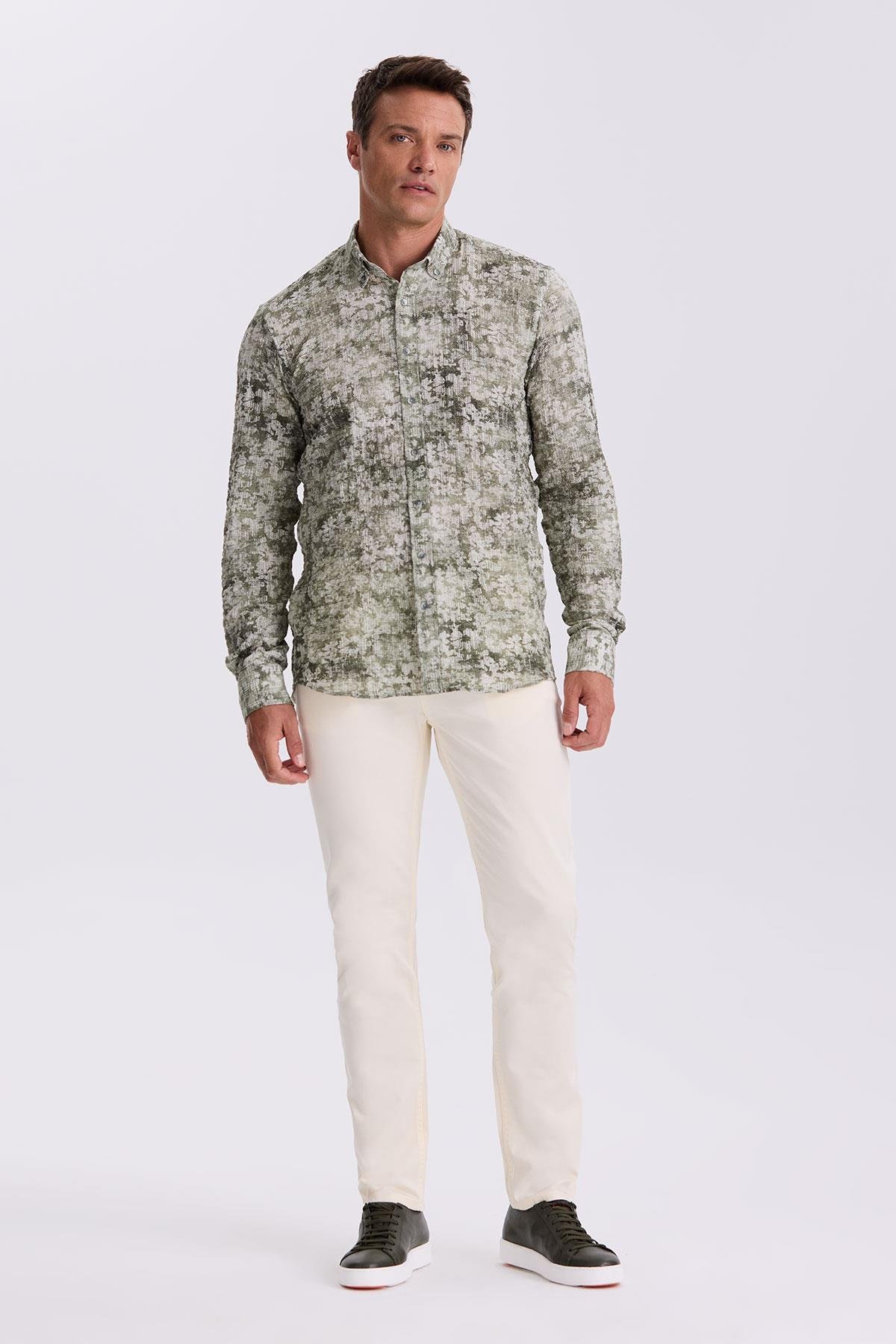 Yeşil Desenli Düğmeli Yaka Comfort Fit Gömlek (JK39CF01M044_523)