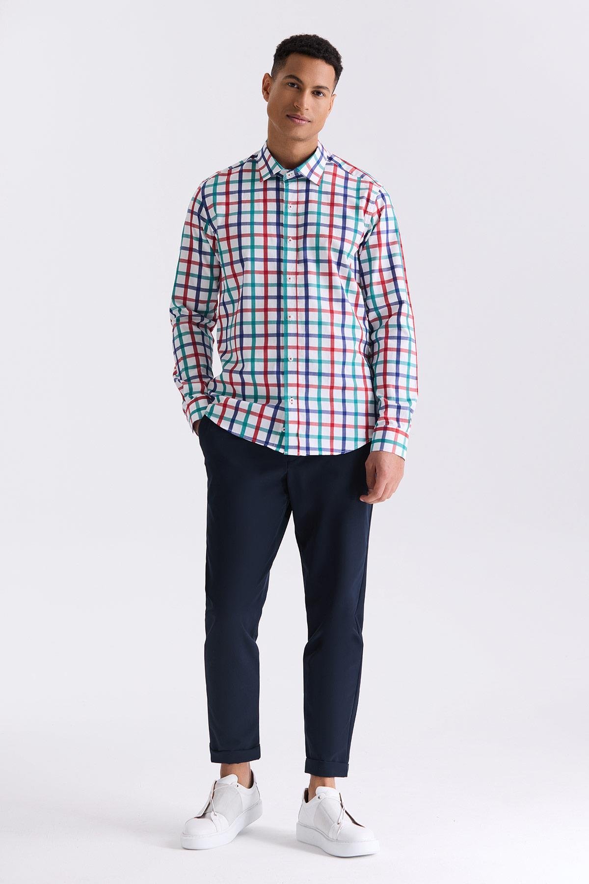 Yeşil Slim Fit Yaka Düğmeli Gömlek