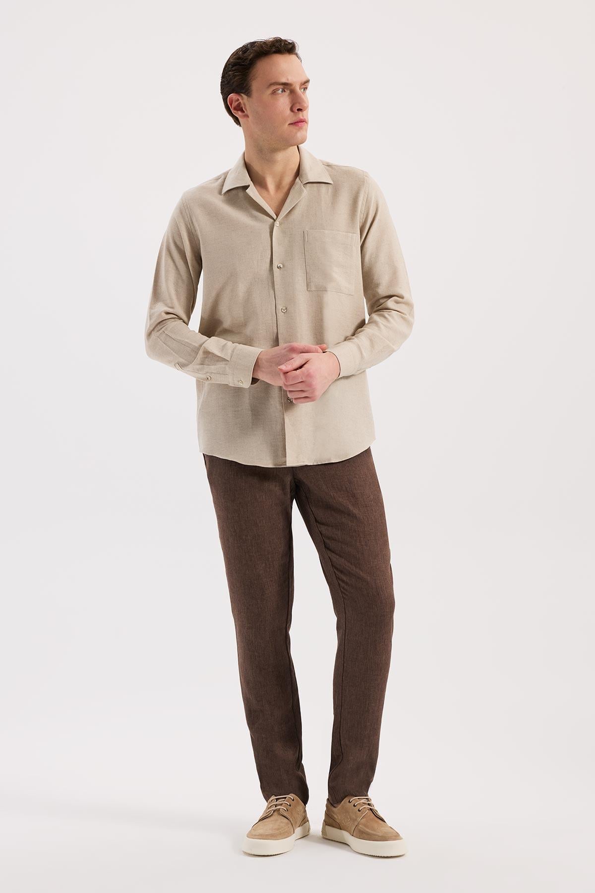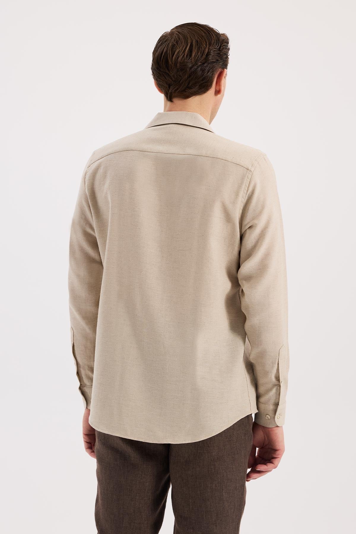 Bej Oversize Cepli Pamuk Karışımlı Gömlek