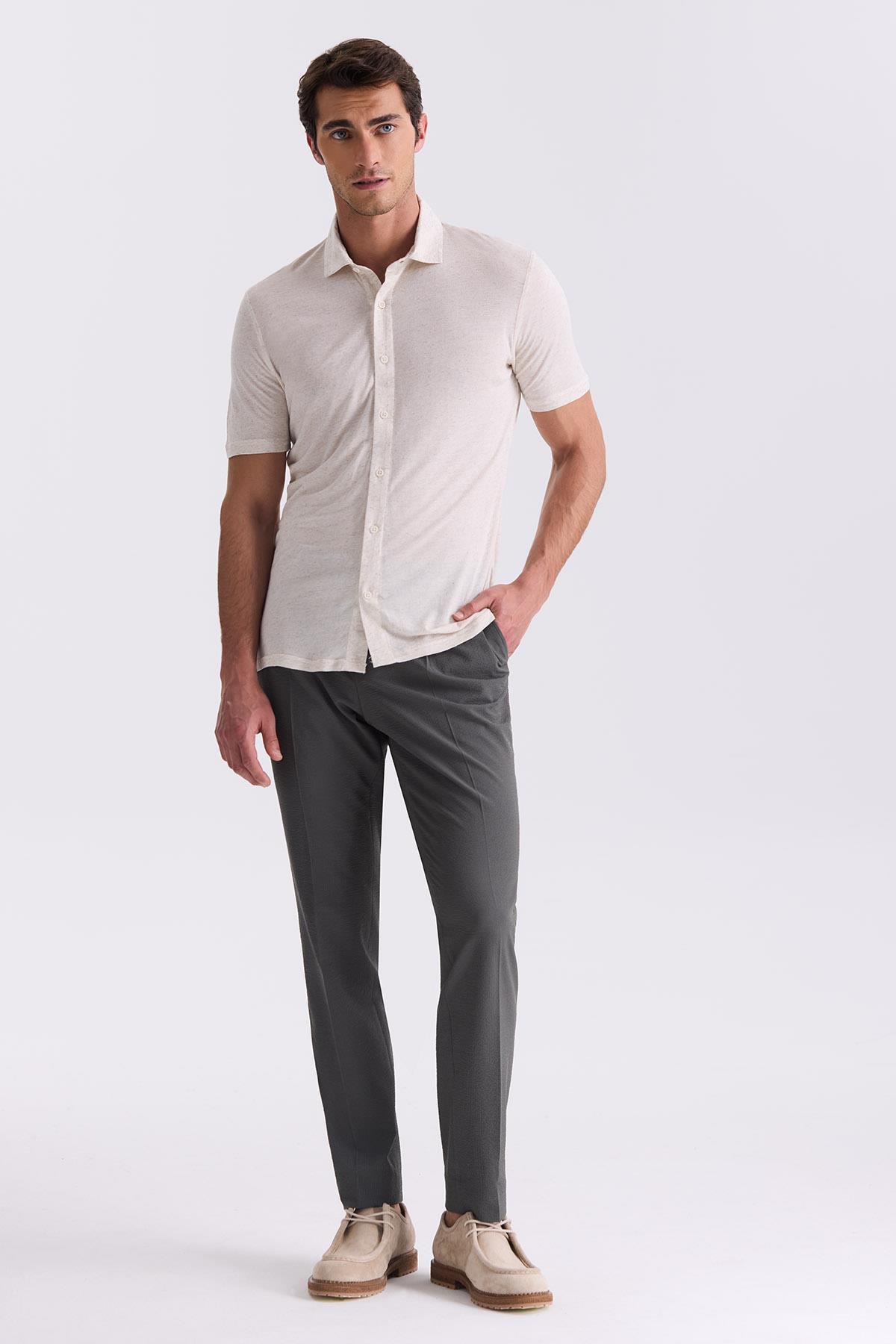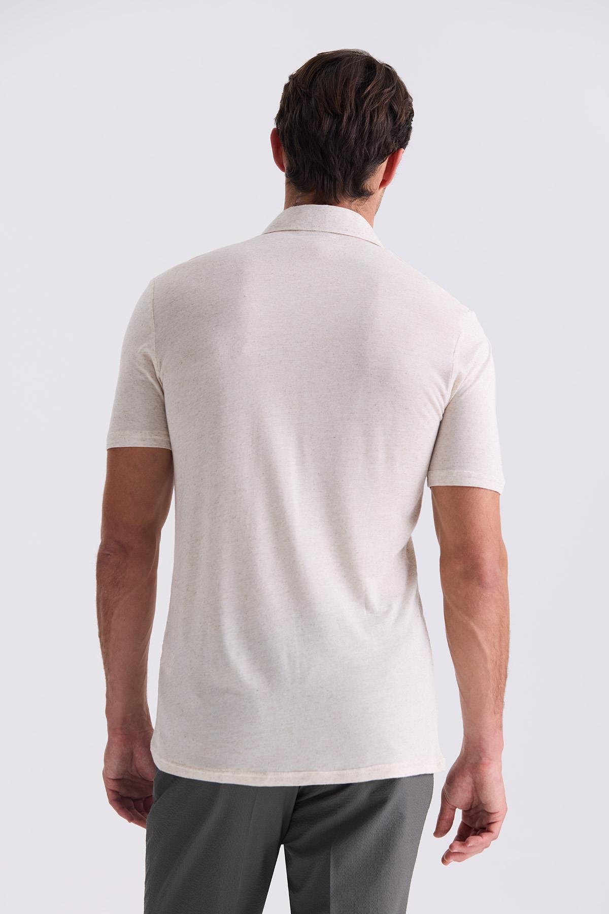 Bej Slim Fit Gömlek Yaka T-Shirt