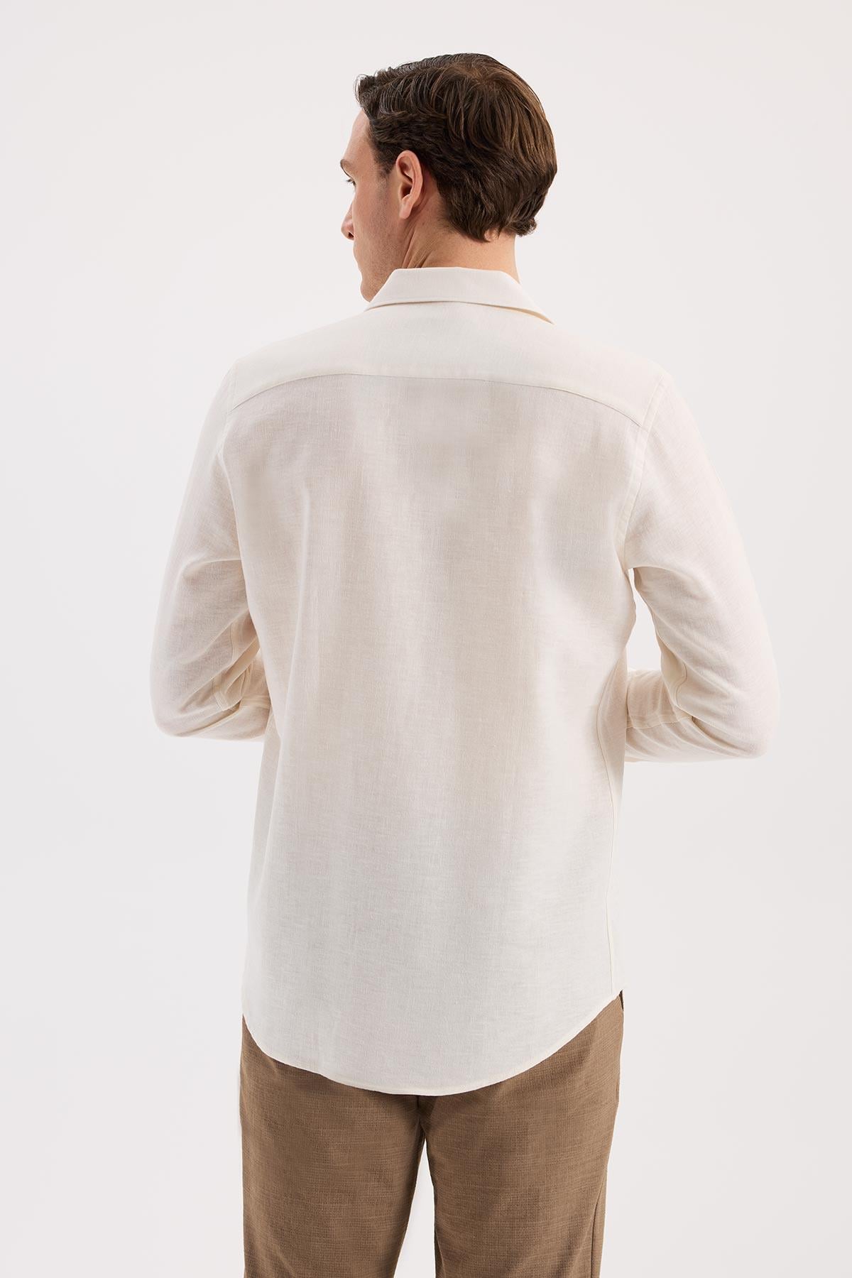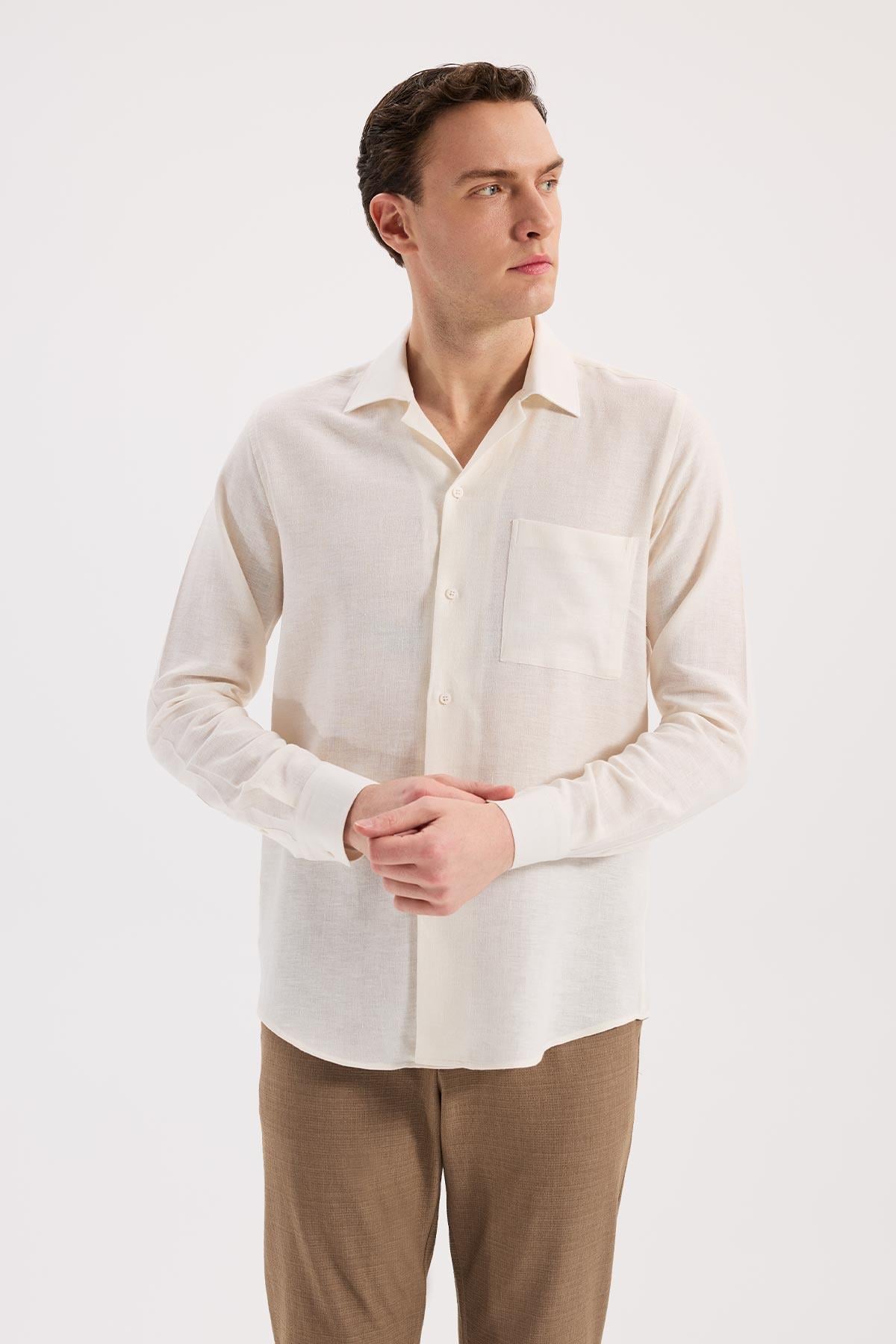 Beyaz Oversize Cepli Pamuk Karışımlı Gömlek