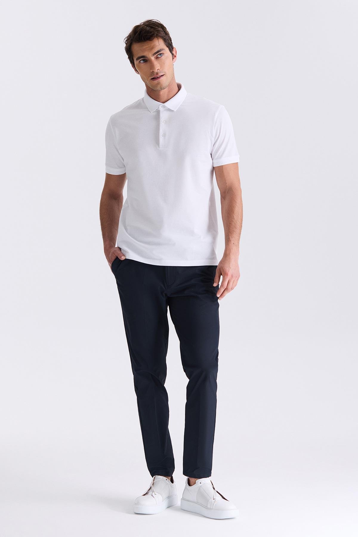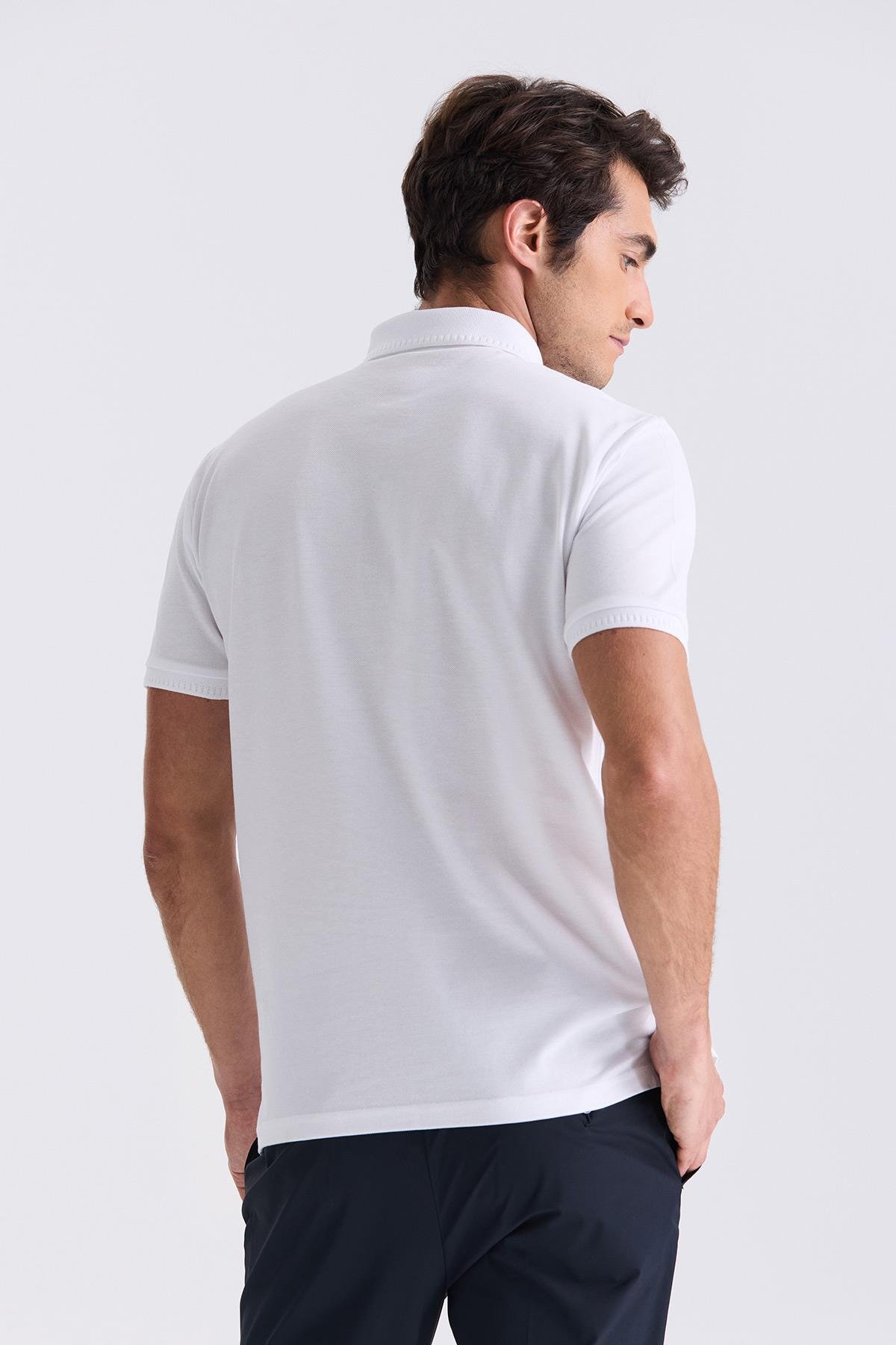 Beyaz Slim Fit %100 Pamuk Merserize Polo Yaka T-shirt