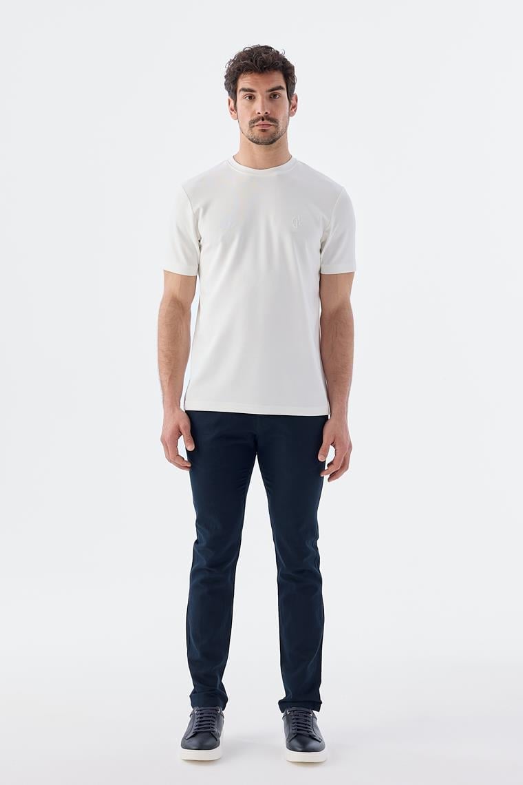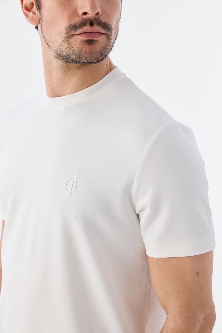 Beyaz Slim Fit Bisiklet Yaka T-Shirt