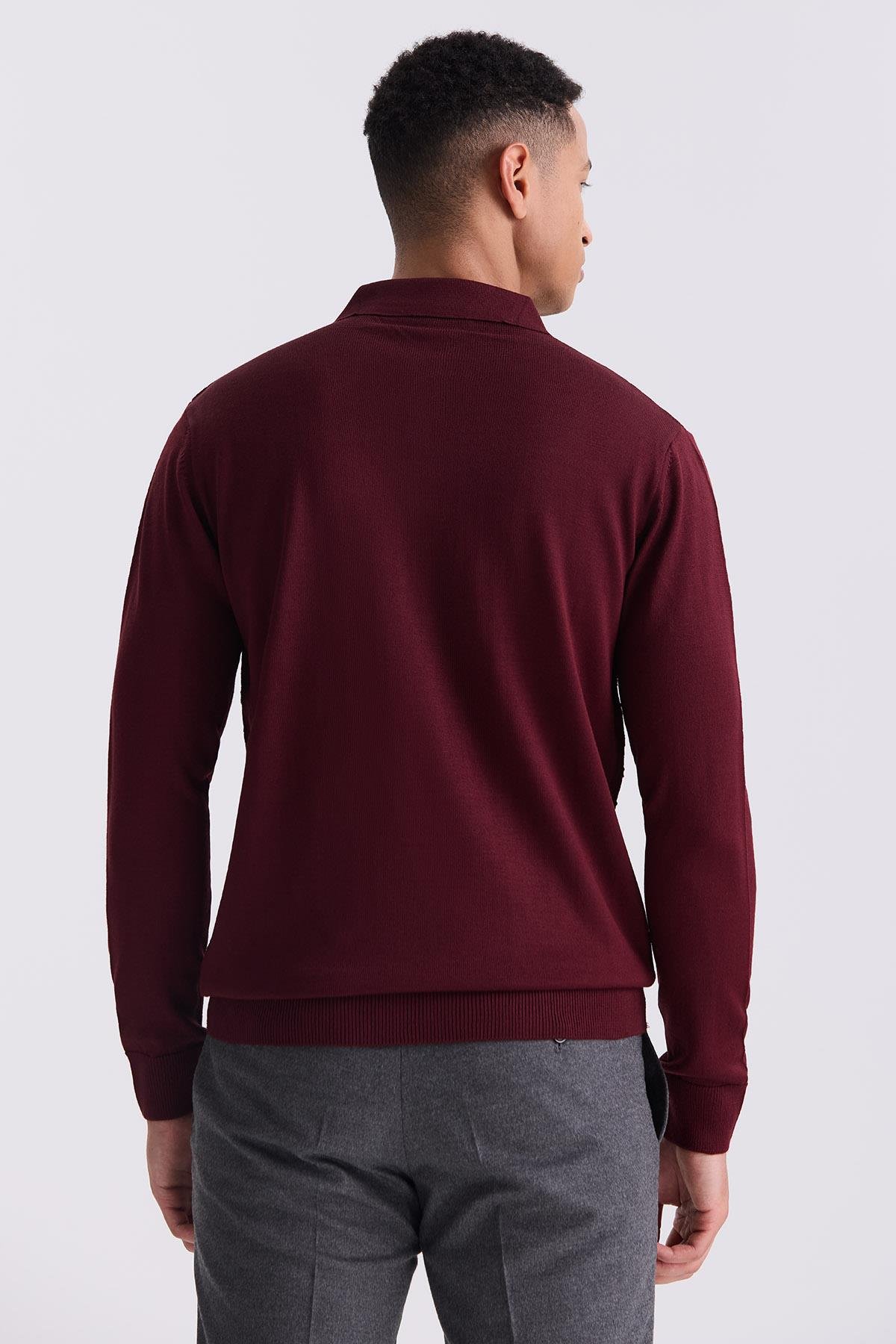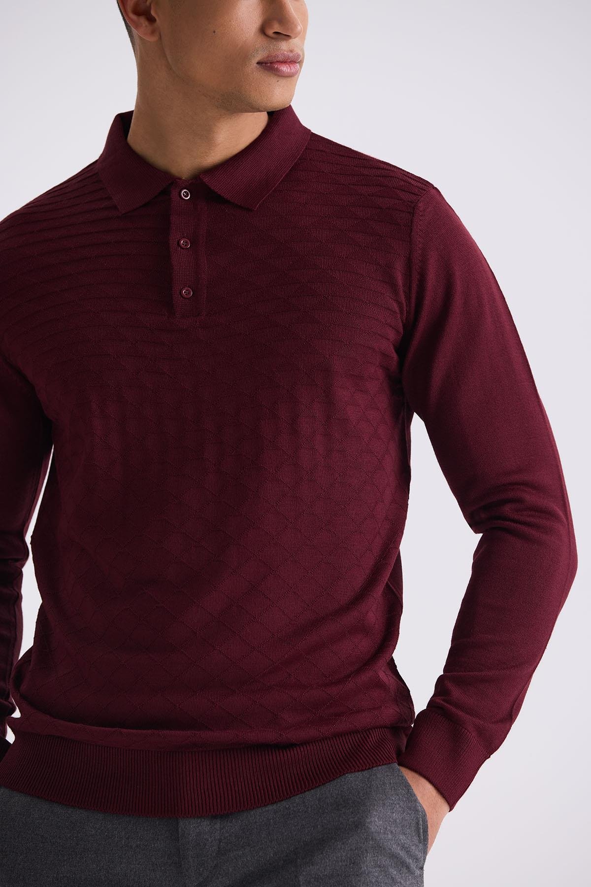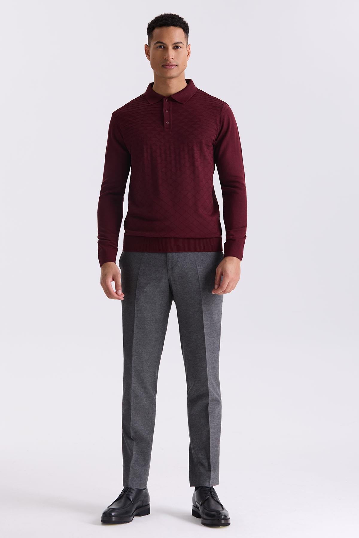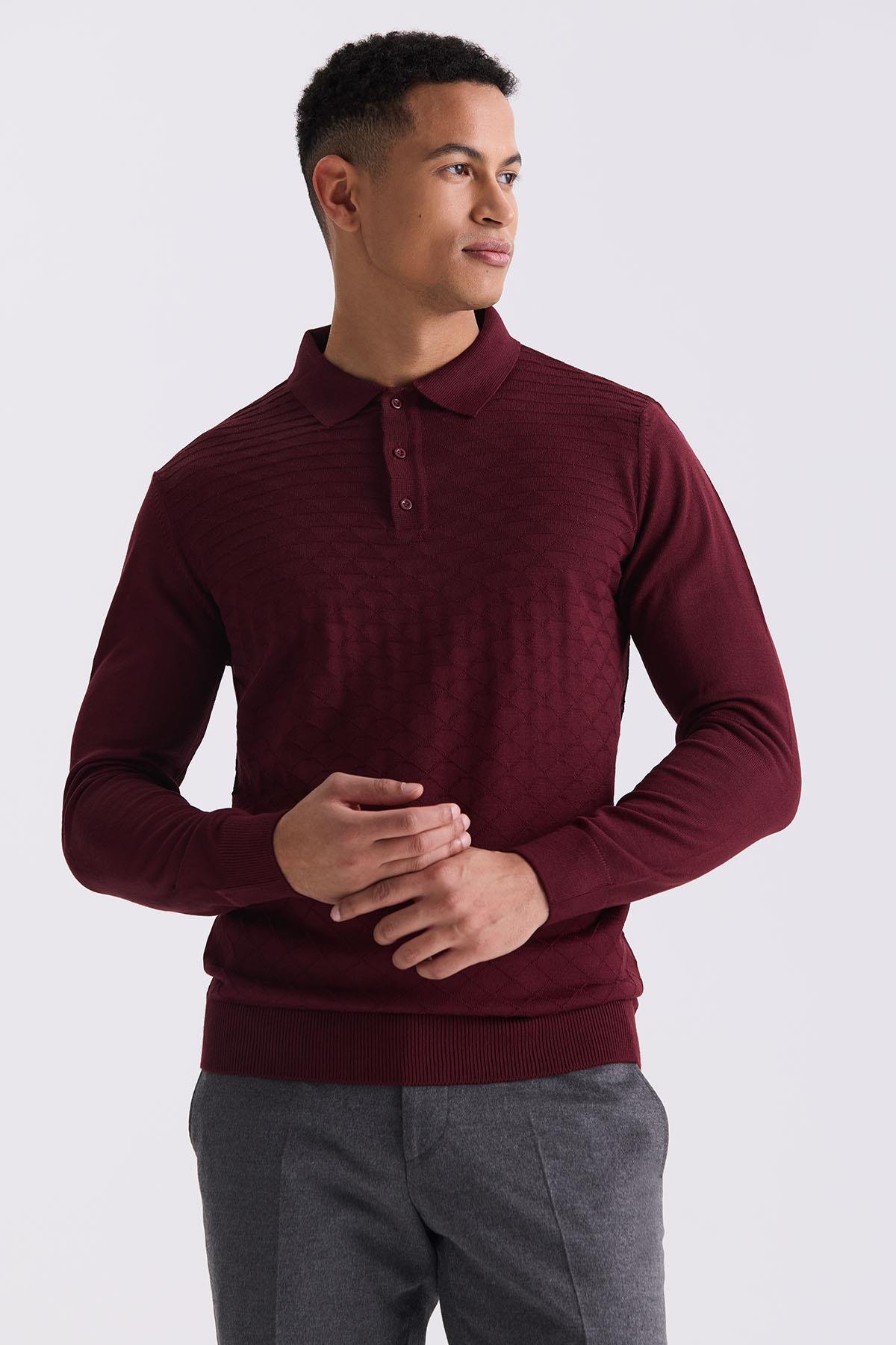 Bordo Classic Fit Desenli Polo Yaka Triko