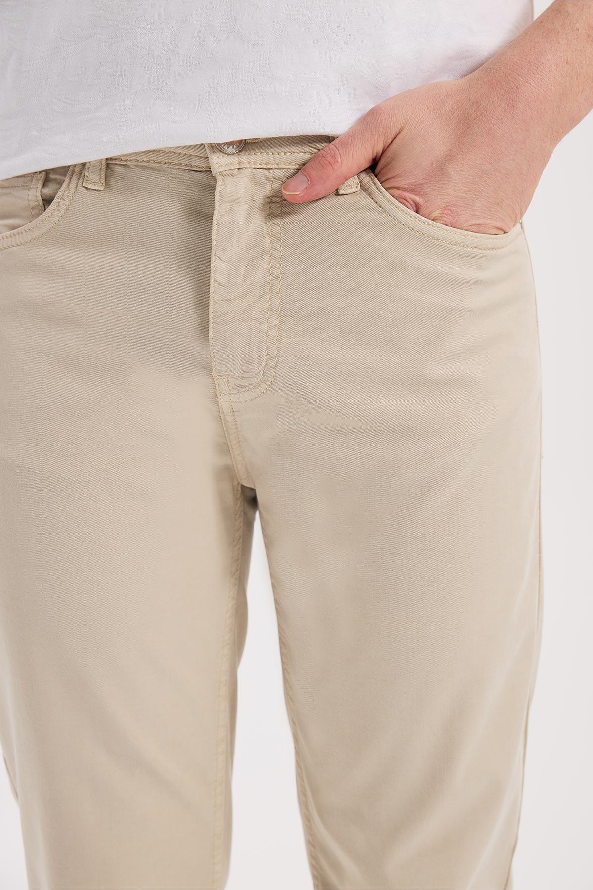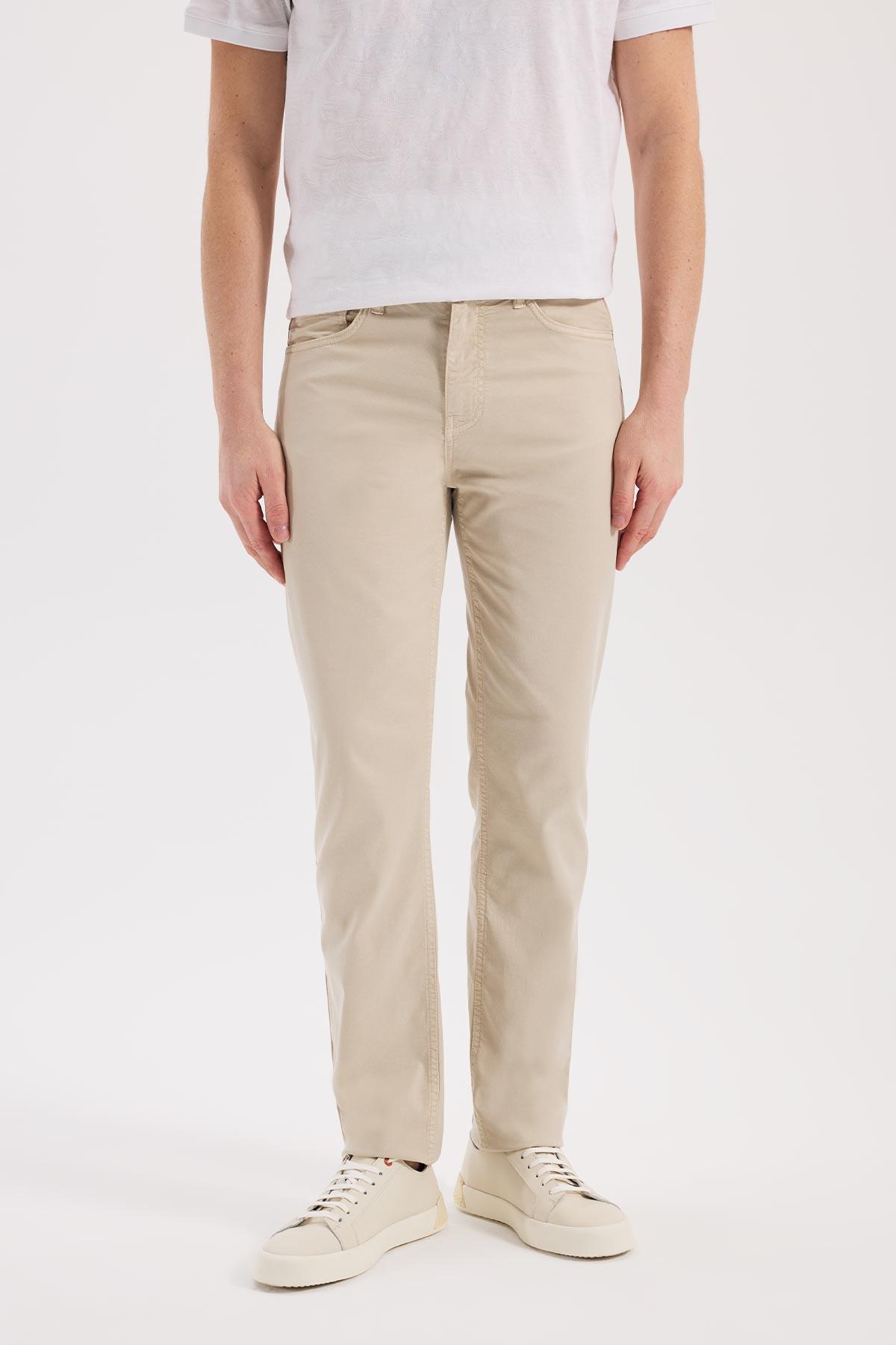 Bej Dar Kalıp - Slim Fit Pantolon Spor 5 Cep