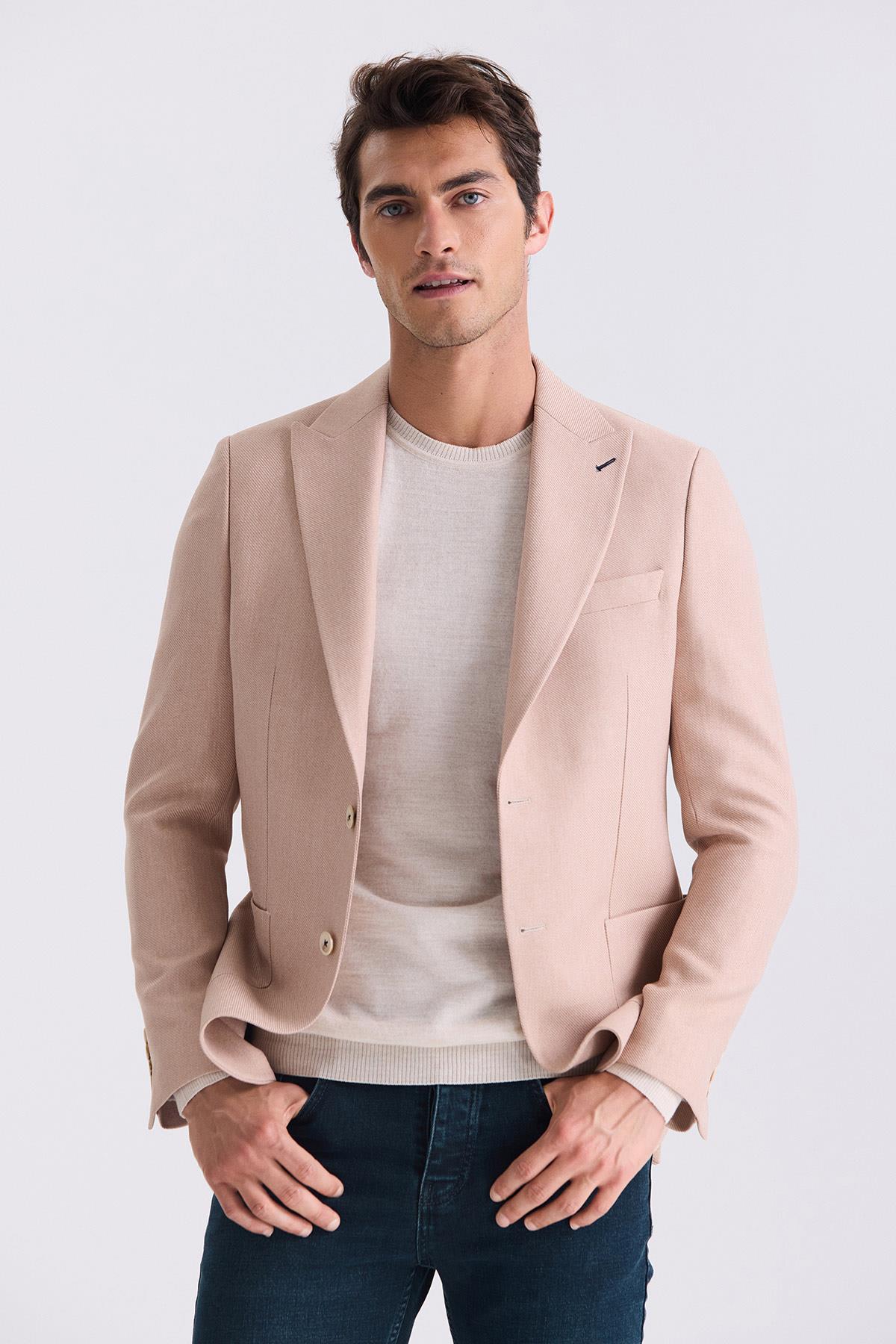 Bej Slim Fit Sivri Yaka Yazlık Spor Ceket
