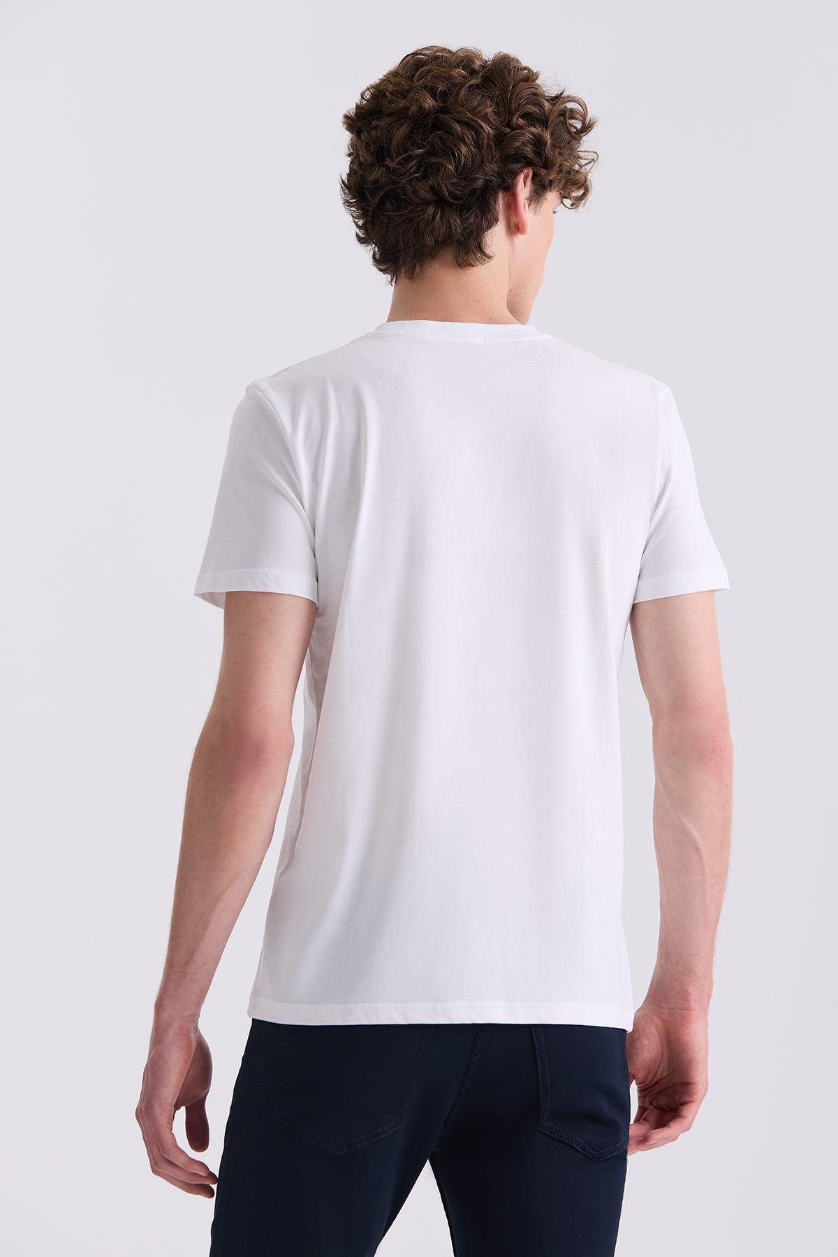 Beyaz Slim Fit Bisiklet Yaka T-Shirt