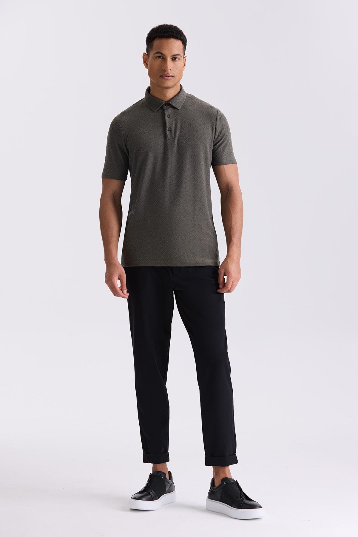 Haki Slim Fit Desenli Polo Yaka T-shirt